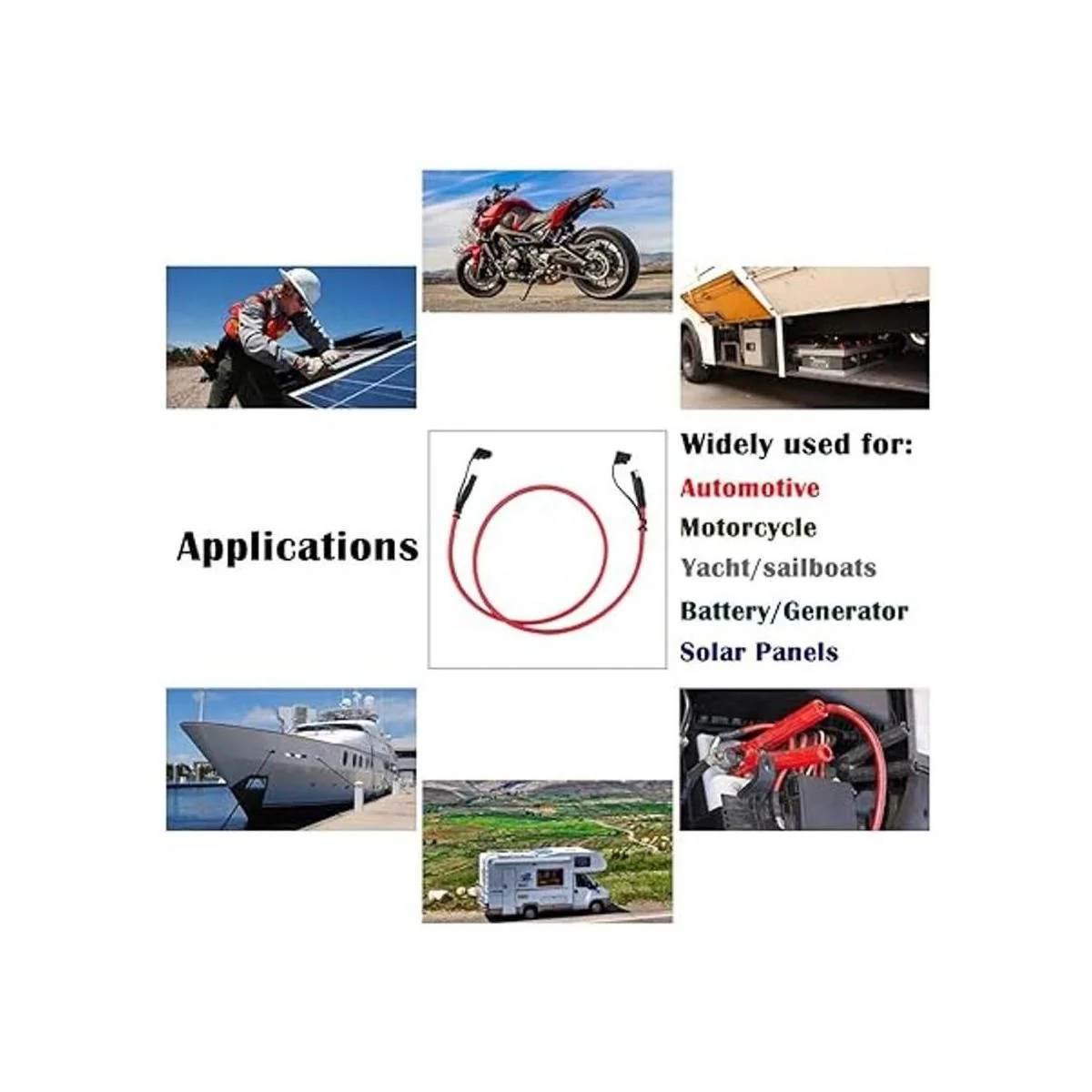 Cable de 2 pines con conector SAE, cable de extensión con conexión SAE universal, se puede utilizar ampliamente en todo tipo de vehículos, como motocicleta, cortacésped, ATV, RV, motor de curricán, ATV, kayak, pulverizador de tractor, inversor de potencia y otros dispositivos con puertos SAE.