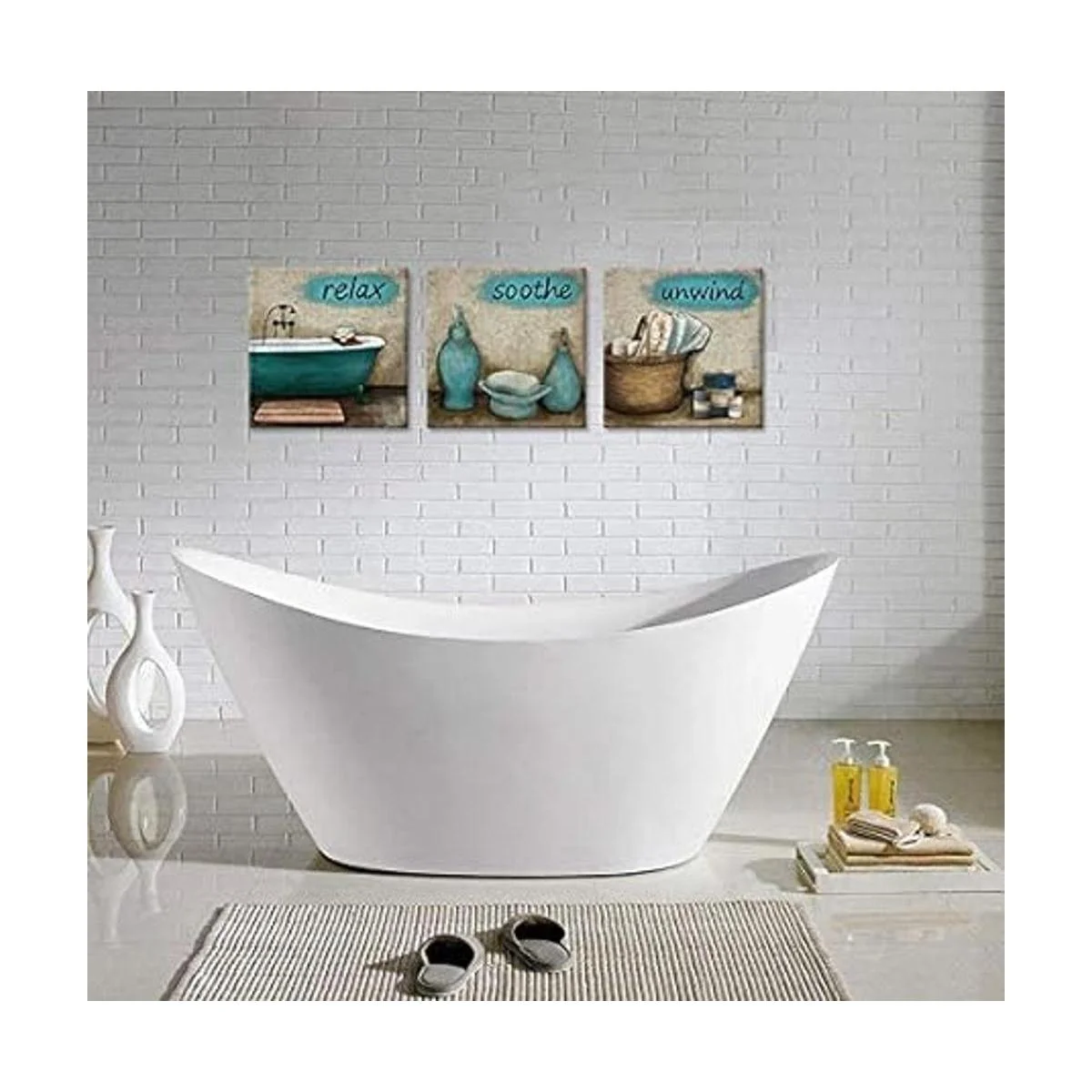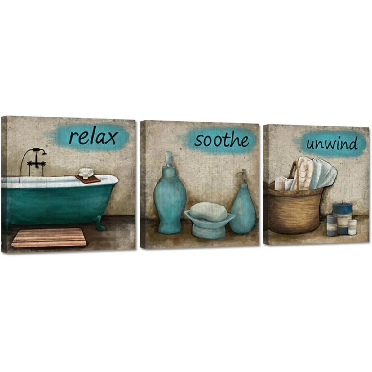 iHAPPYWALL Juego de 3 piezas de lienzo para baño, estilo verde azulado, juego de baño, toalla para relajarse, relajarse, relajarse, descansar, baño, bodegón, impresión sobre lienzo estirado y enmarcado, listo para colgar