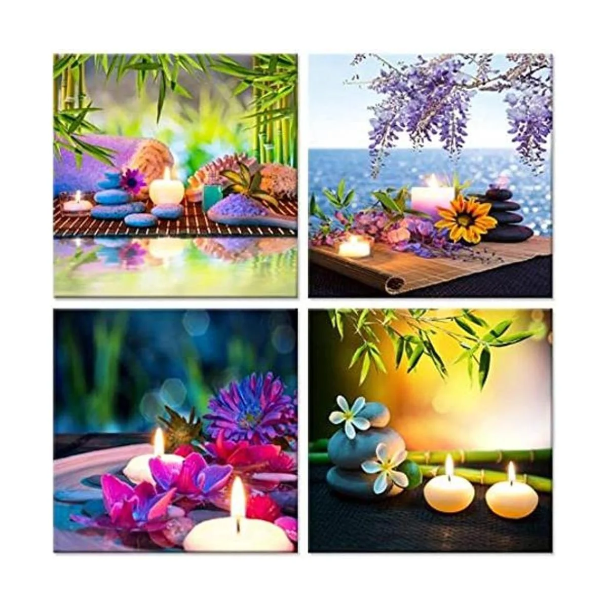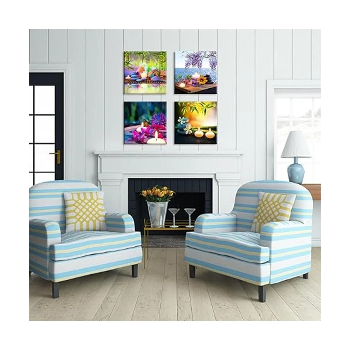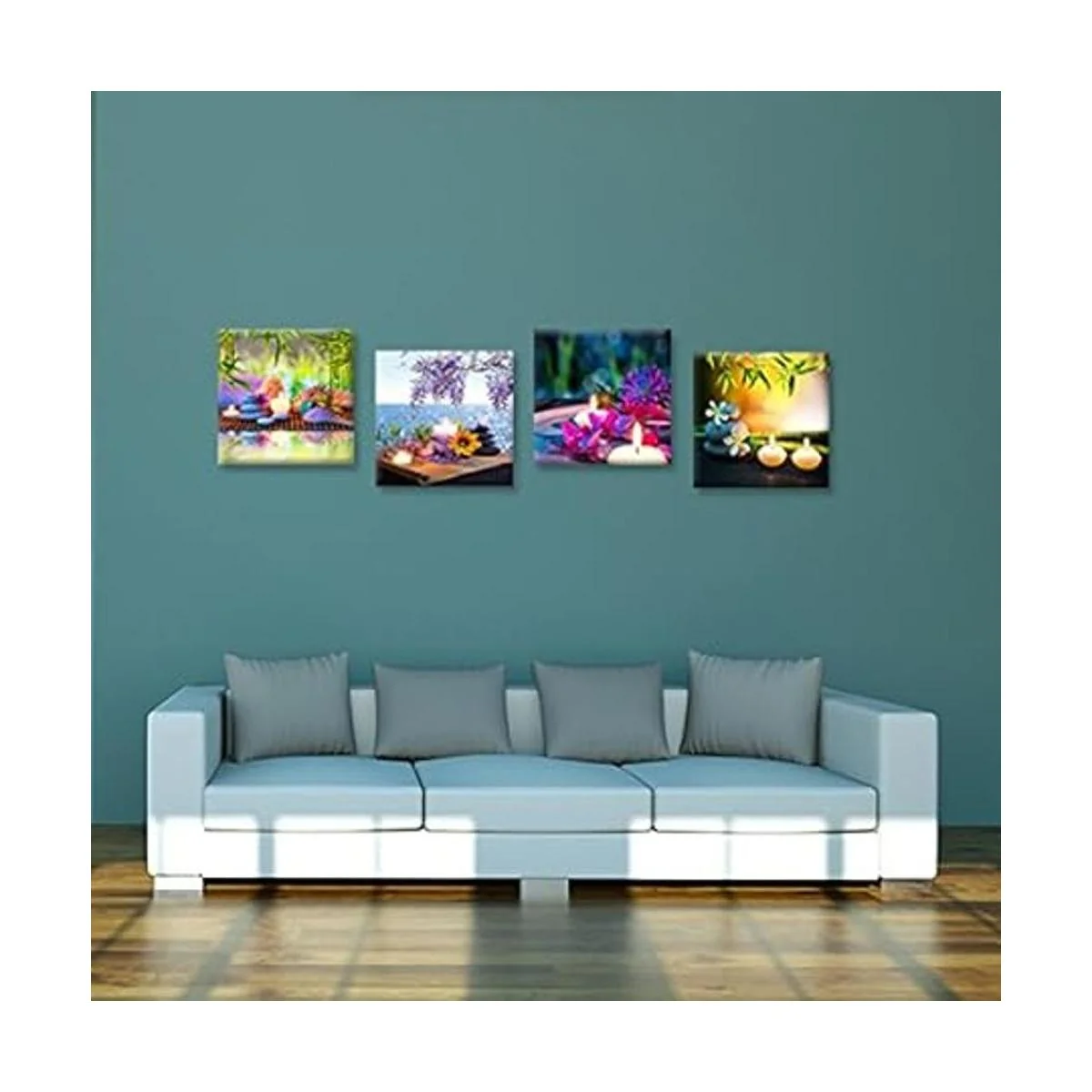 iHAPPYWALL Lienzo de arte zen para decoración de pared, spa, tratamiento de masaje, pintura de orquídea, flor francangipani de bambú, vela en lienzo, 4 paneles listos para colgar, 12 x 12 x 4 piezas