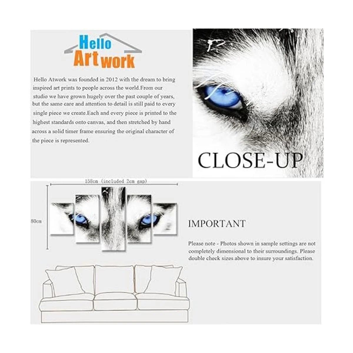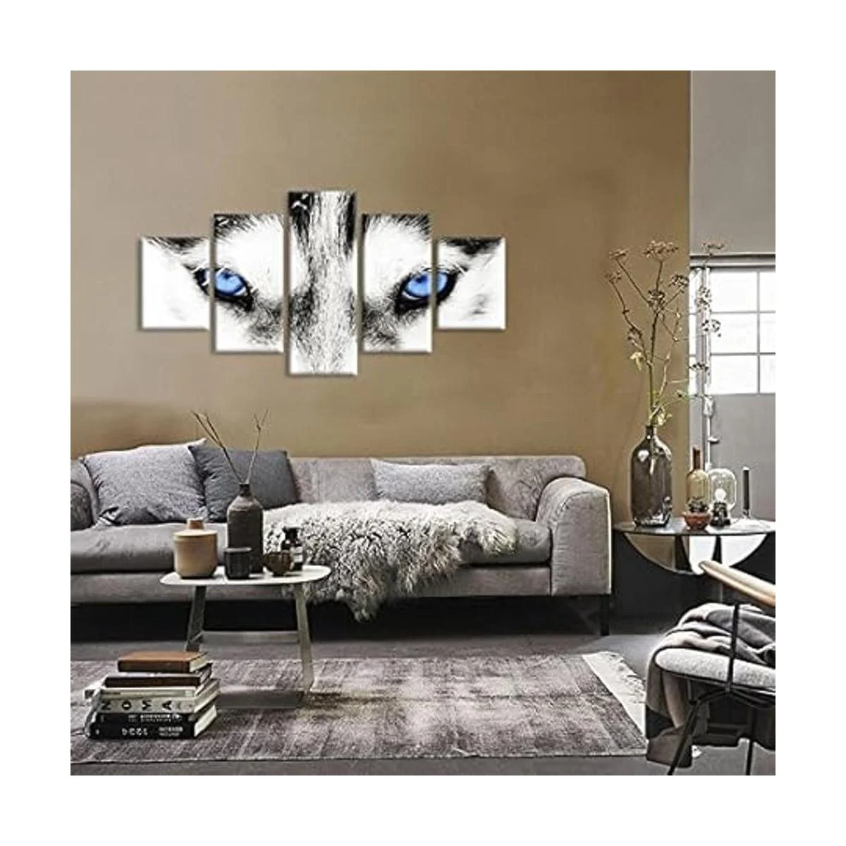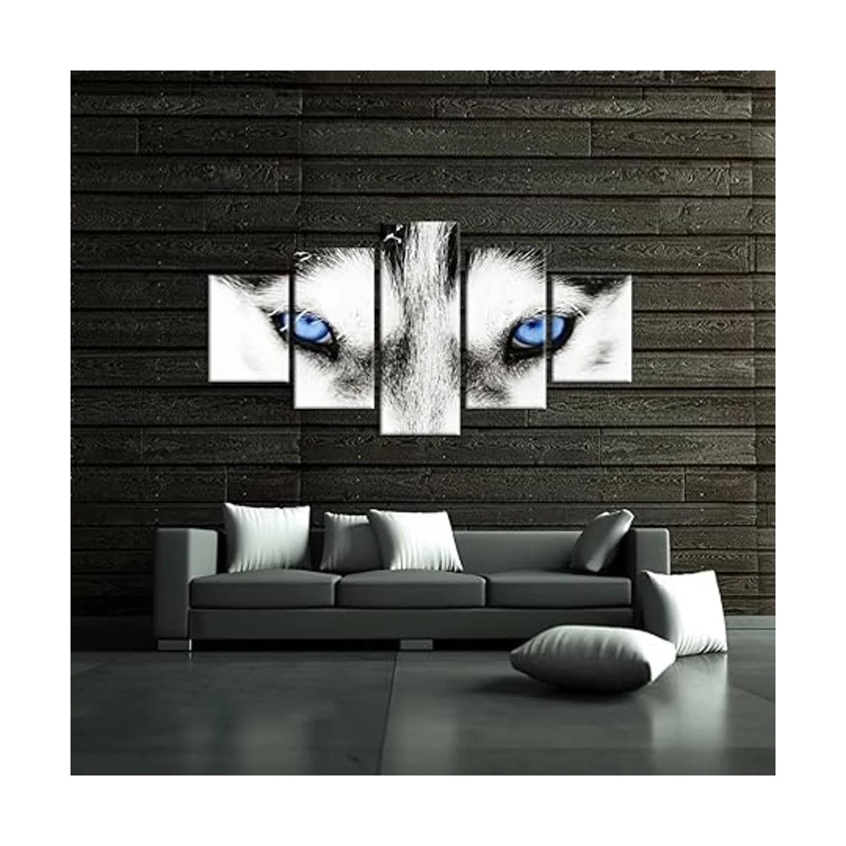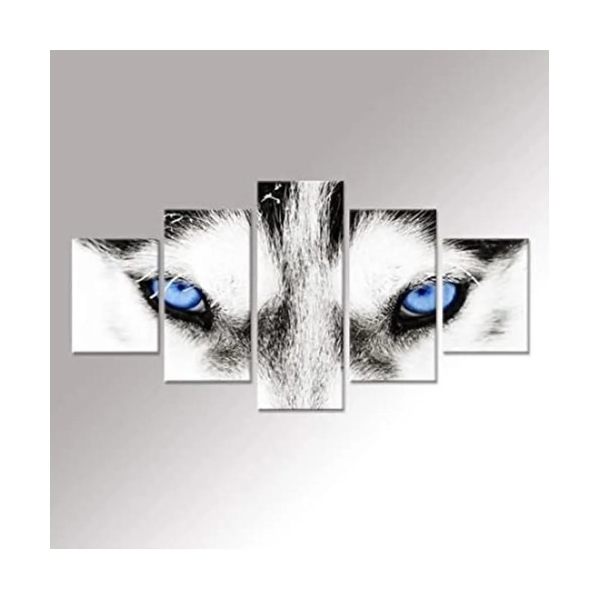 iHAPPYWALL Lienzo de lobo grande para pared, diseño de perro lobo blanco y negro con ojos azules, cartel de cabeza de animal serie 5 piezas abstractas pintura para decoración del hogar arte de la pared