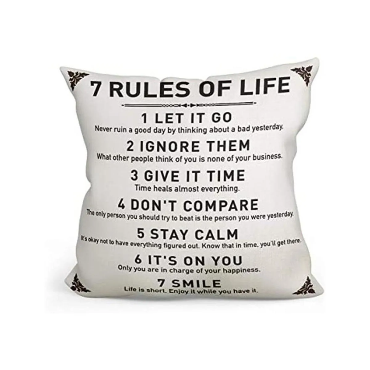 Ihopes Fundas de almohada rústicas inspiradoras 7 Rules of Life Funda de cojín para sofá, dormitorio, decoración del hogar, regalo Mejor graduacióncumpleaños 18 x 18 pulgadas