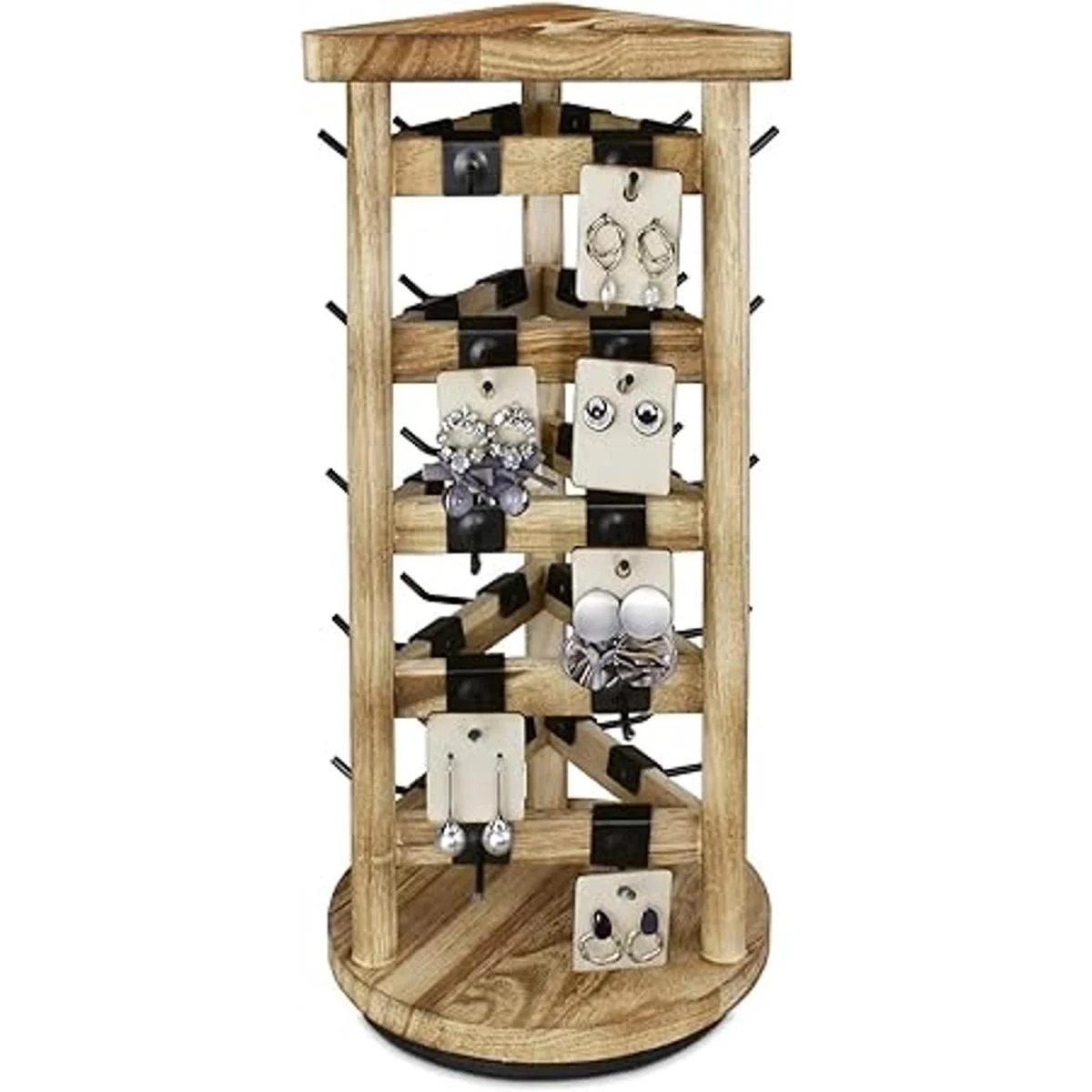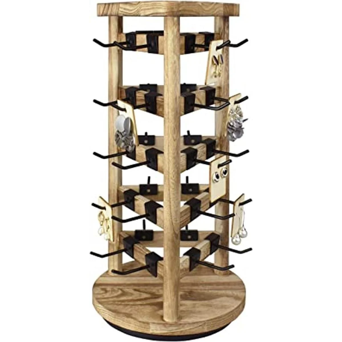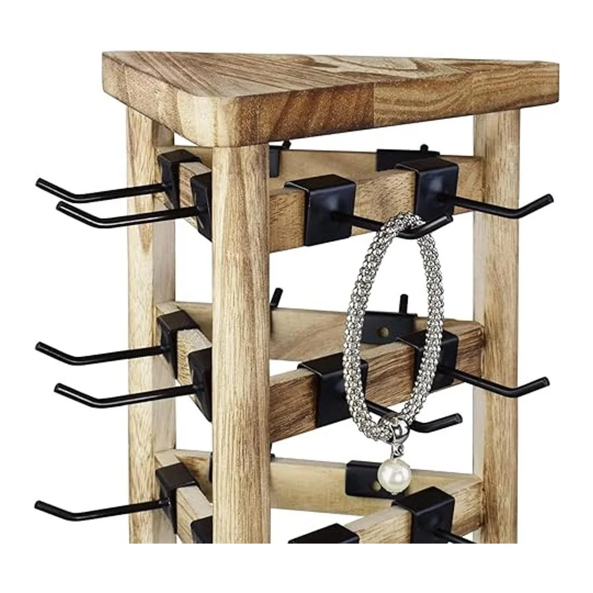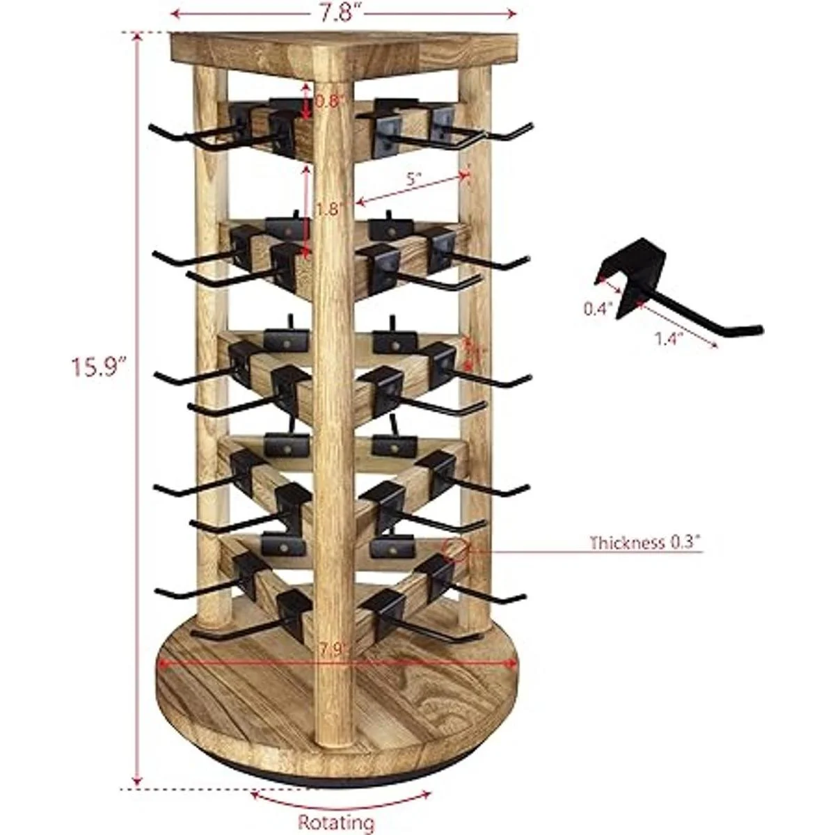 Ikee Design Torre de joyería giratoria de madera de 30 ganchos, soporte de exhibición de almacenamiento de tarjetas giratorias para tienda, exhibición, feria y hogar, 7.9 pulgadas de ancho x 7.8 pulgadas de profundidad x 15.9 pulgadas de alto