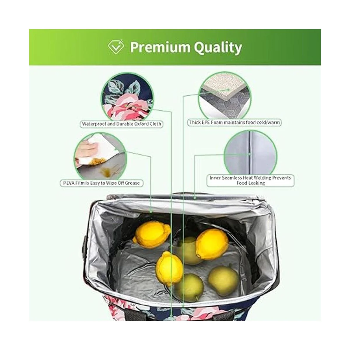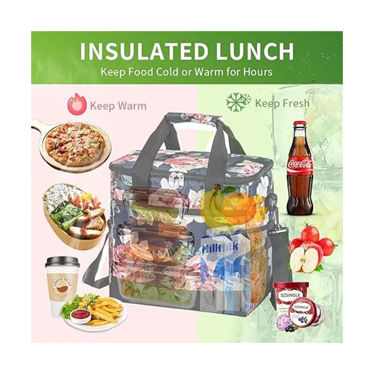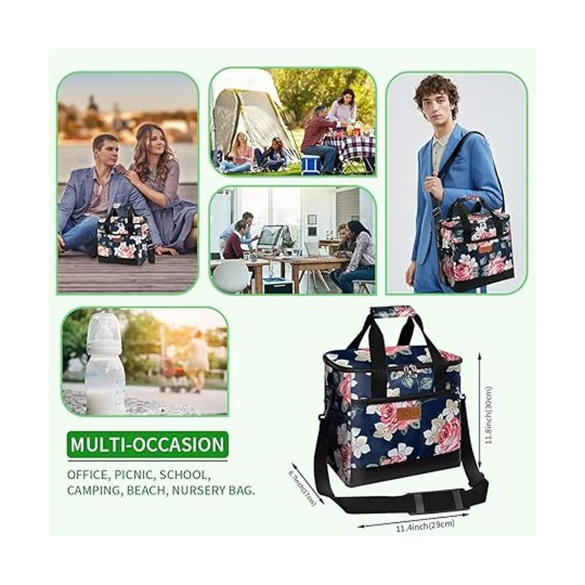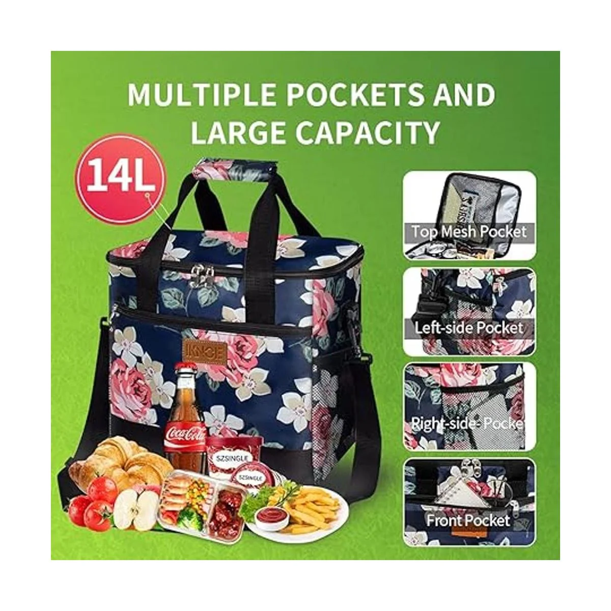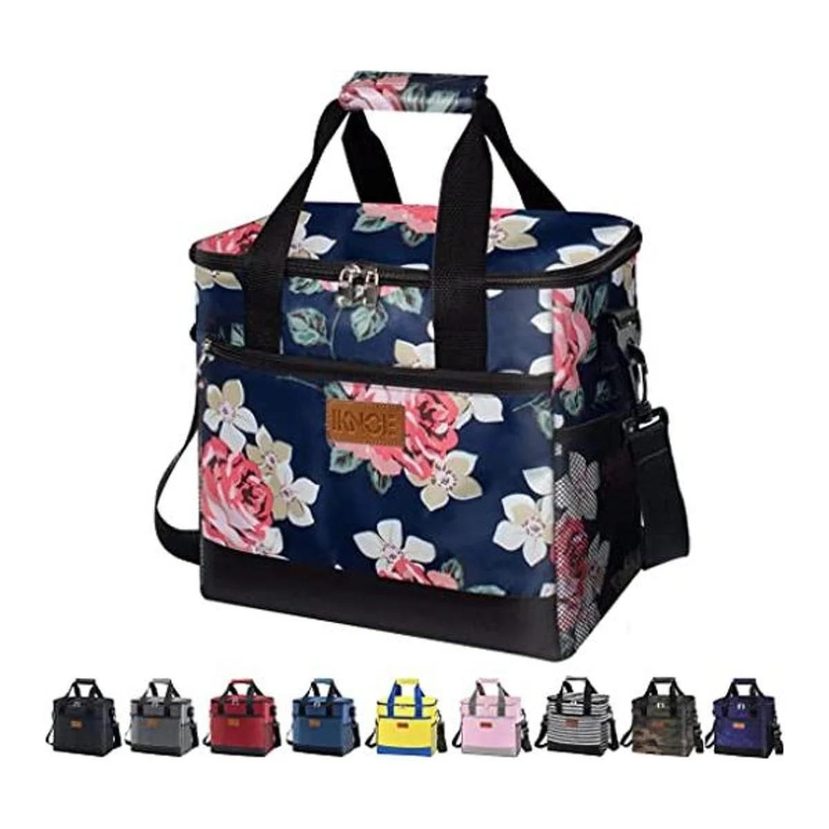 Iknoe Bolsa térmica grande plegable con 24 latas aisladas, bolsa térmica a prueba de fugas con múltiples bolsillos para adultos y niños, lonchera aislada para playa, picnic, trabajo, escuela flor
