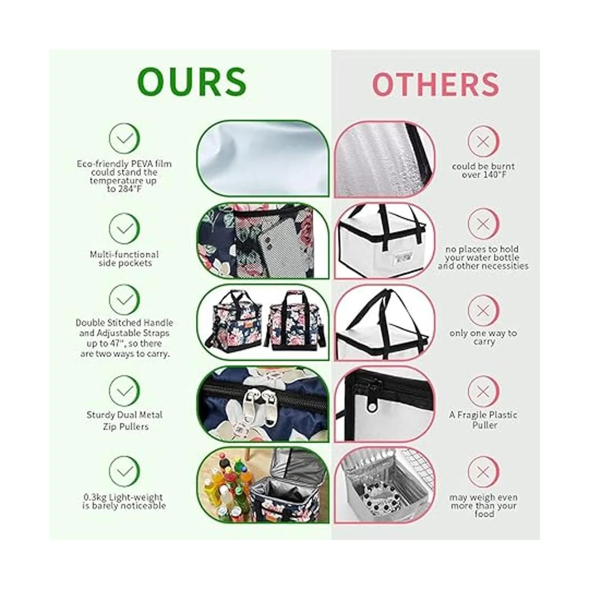 Aislamiento y resistente: acolchado de espuma perlada de 0.197 in y forro ecológico de PEVA de las loncheras mantienen la comida caliente o fría durante 8 horas. Cremalleras de doble costura y tiradores de doble cremallera de metal premium de los enfriadores de almuerzo garantizan una apertura suave, resistente a desgarros y máxima durabilidad.