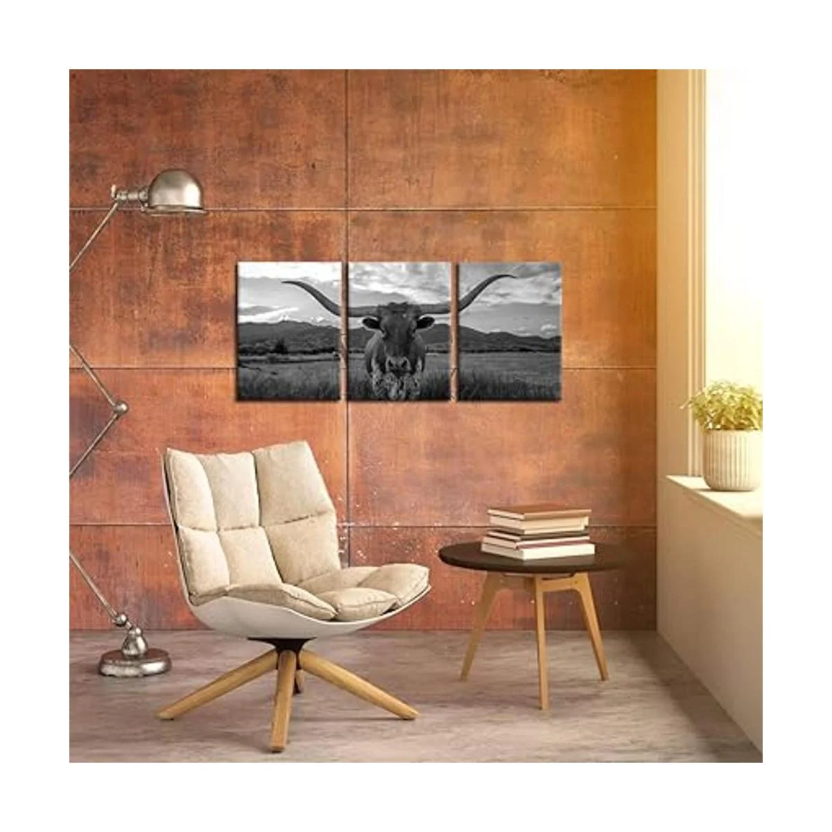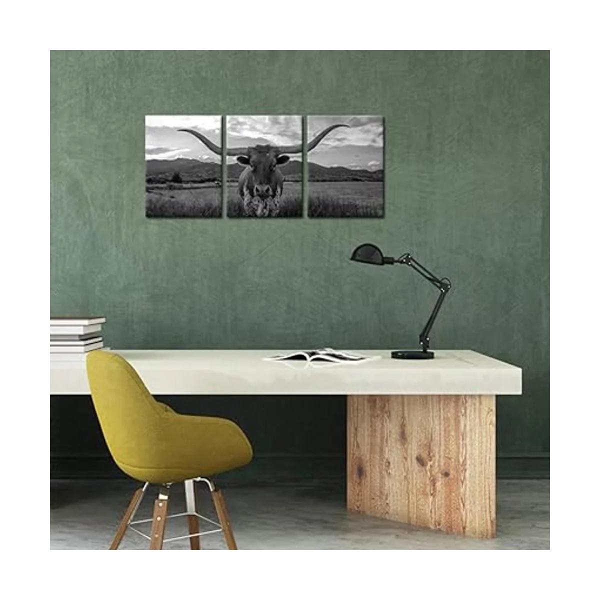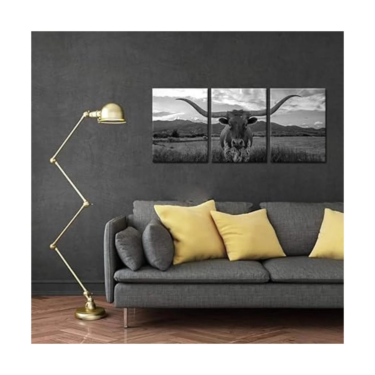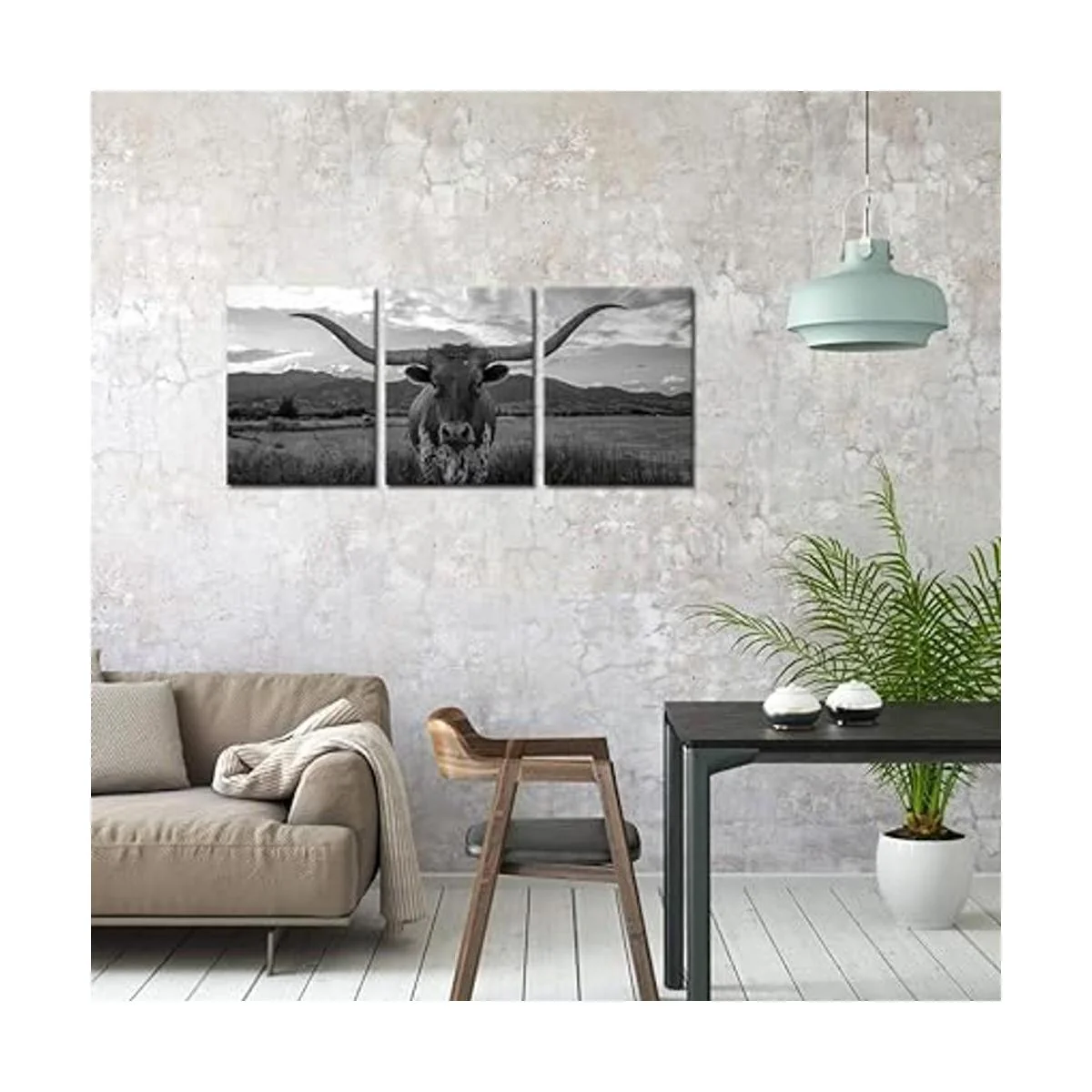 iKNOW FOTO Impresiones artísticas de animales de granja, ganado de tierras altas blanco y negro con cuernos largos, imagen impresa en lienzo para decoración del hogar, decoración moderna de sala de estar, enmarcada, lista para colgar, 12 x 16 pulgadas x 3 piezas