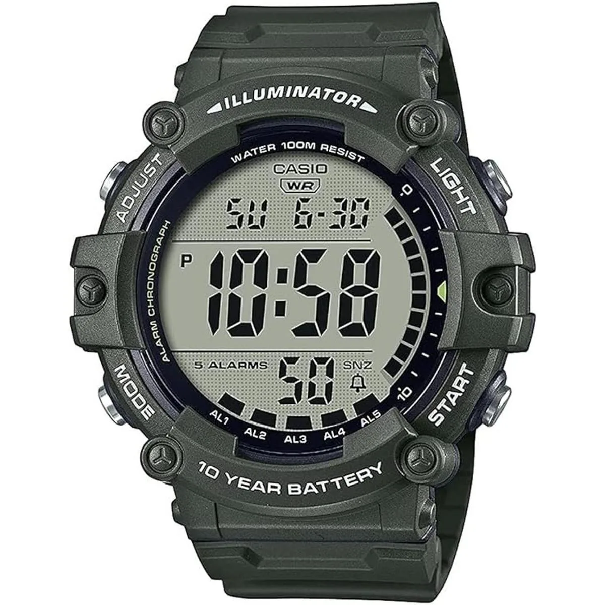 Casio Illuminator Reloj digital para hombre, 10 años, correa extra larga, resistencia al agua, 5 alarmas con temporizador de cuenta regresiva, color verde, AE1500WHX3AVCF, forro polar verde con licencia oficial de star wars silent one crew., Deporte