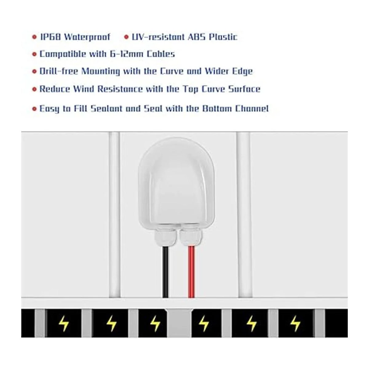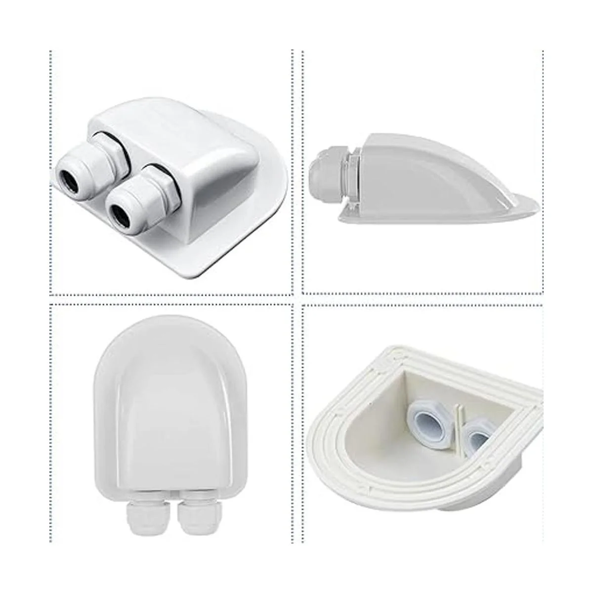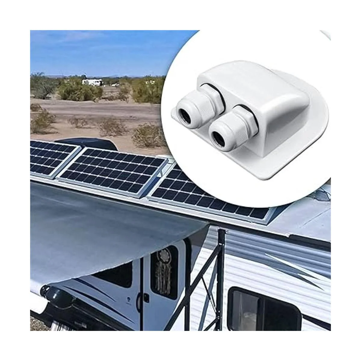 ILSSLI Glándula de entrada de cable solar, resistente al agua, cubierta de conector de doble cable solar fotovoltaico, soporte de plástico curvado, ABS, carcasa de entrada de cable doble para paneles solares de RV, caravana y barco