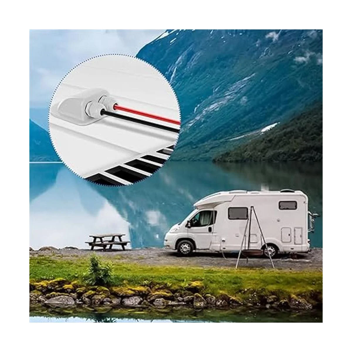 Fácil instalación: no hay necesidad de perforar agujeros en el techo o cubierta de la caravana durante la instalación. Se instala con pegamento, que es seguro, hermoso y fácil de desmontar.
