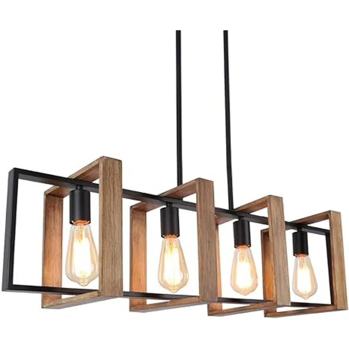 Iluminación de isla de cocina de 35.4 pulgadas, 4 candelabros ligeros de granja para comedor, iluminación colgante moderna negra, luces de mesa de piscina, acabado de madera y metal negro mate