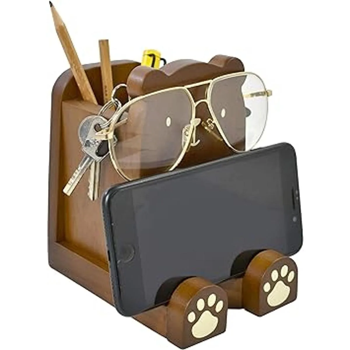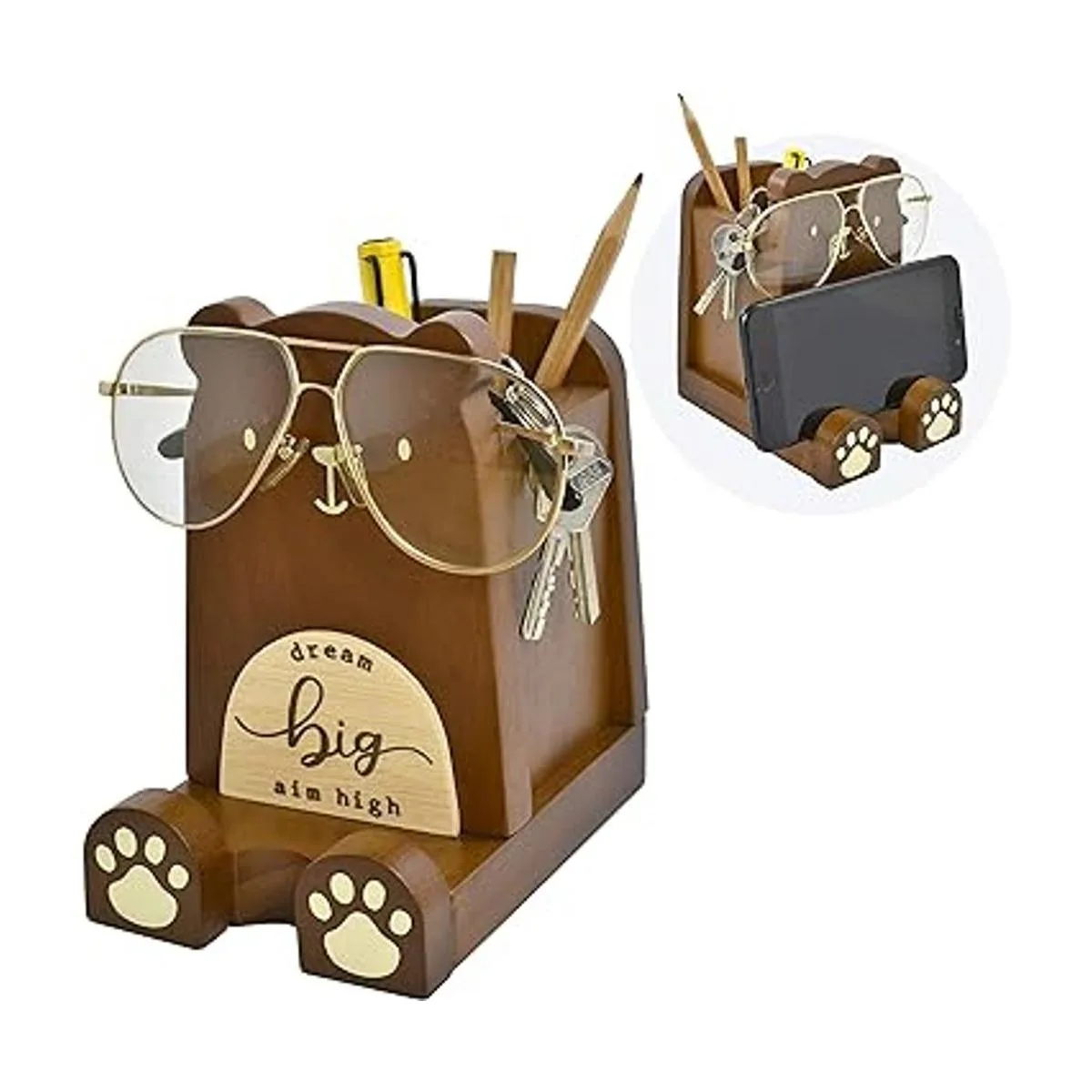 Im Soporte de madera maciza multiusos para lentes, teléfono, bolígrafo y lápiz, organizador de escritorio, accesorios decorativos de papelería, súper lindo para hogar, oficina, cumpleaños y regalos