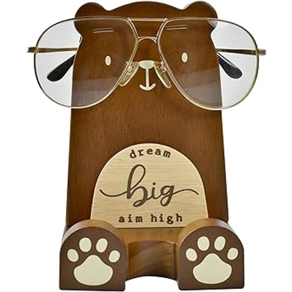 Madera maciza ecológica: soporte para gafas con forma de animal, soporte para lápiz/bolígrafo, tallado, cepillo, tijeras, organizador de escritorio con soporte para teléfono celular, decoración para oficina, escritorio, hogar, decoración creativa para sala de estar, habitación de los niños, estudio, dormitorio, oficina, recámara, fiesta, etc. Regalo creativo para amigos, colegas y seres queridos.
