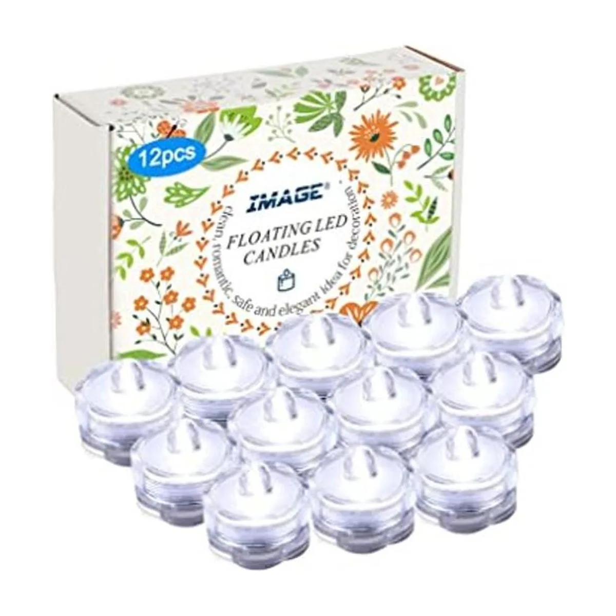 IMAGE Luces sumergibles para estanque, paquete de 12 luces LED subacuáticas, velas con pilas, para florero, tanque de agua, boda, fiesta, decoración del hogar, floral, blanco frío