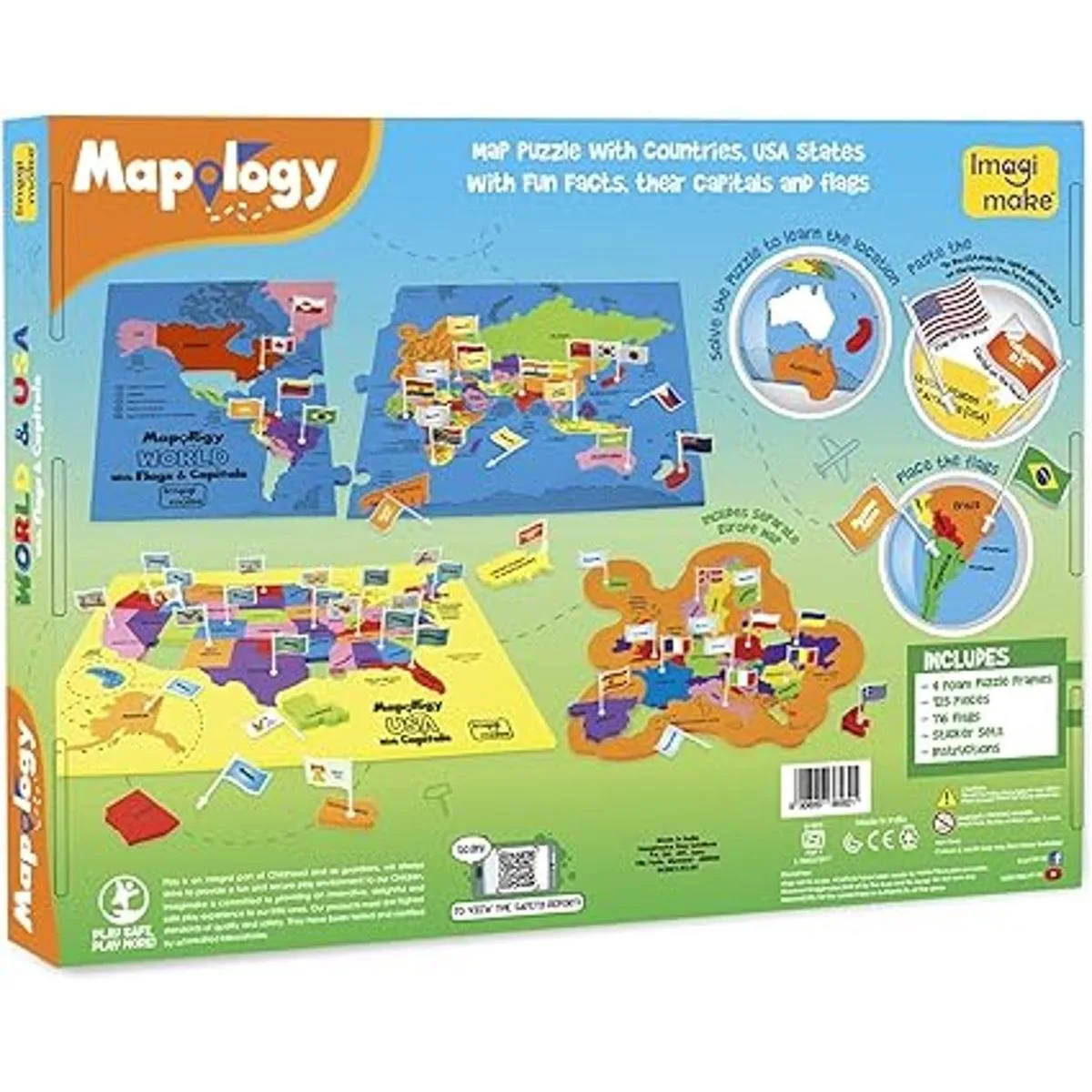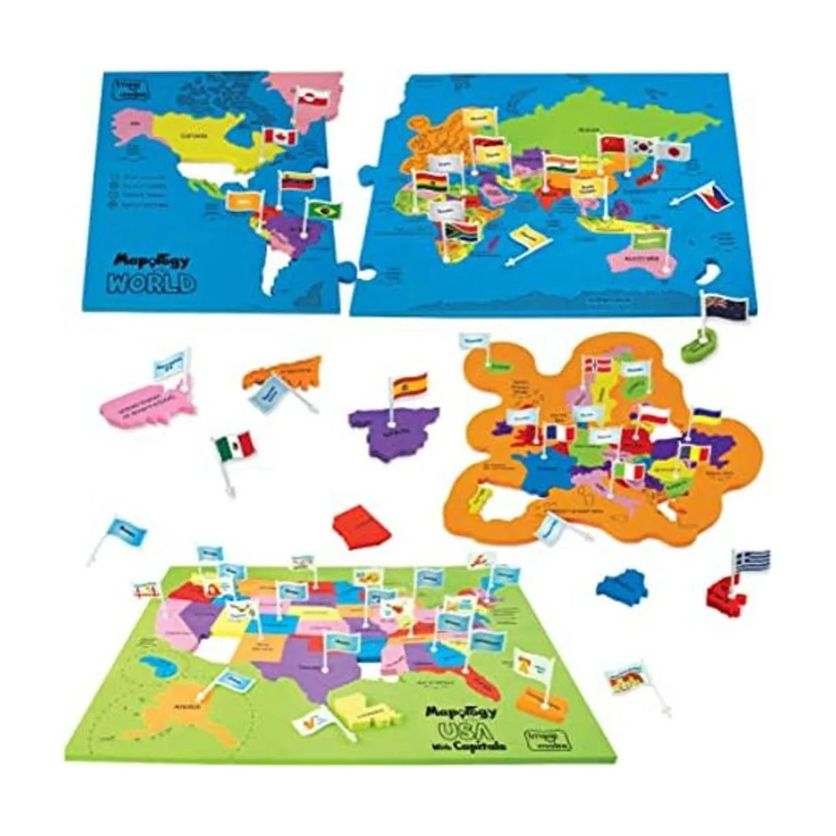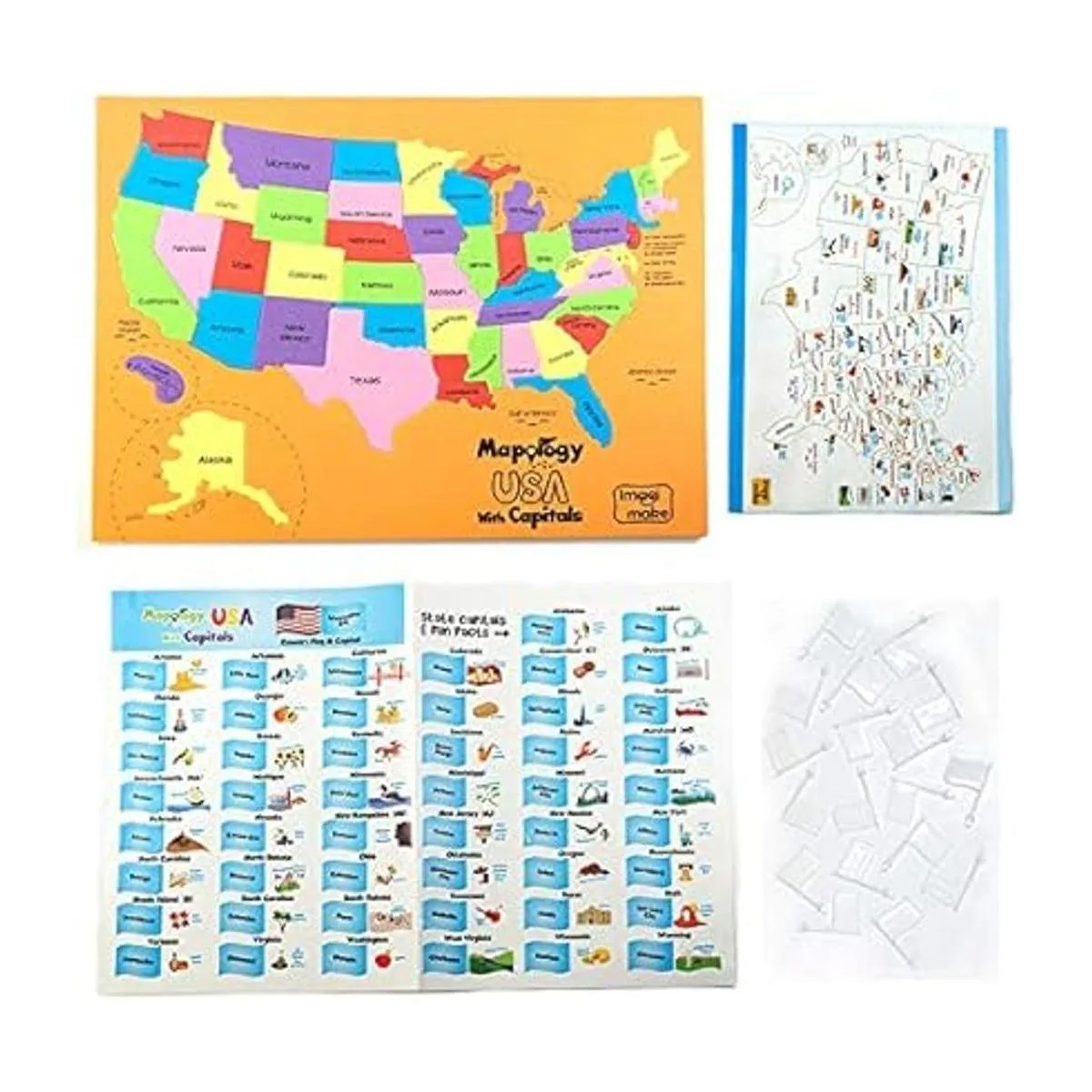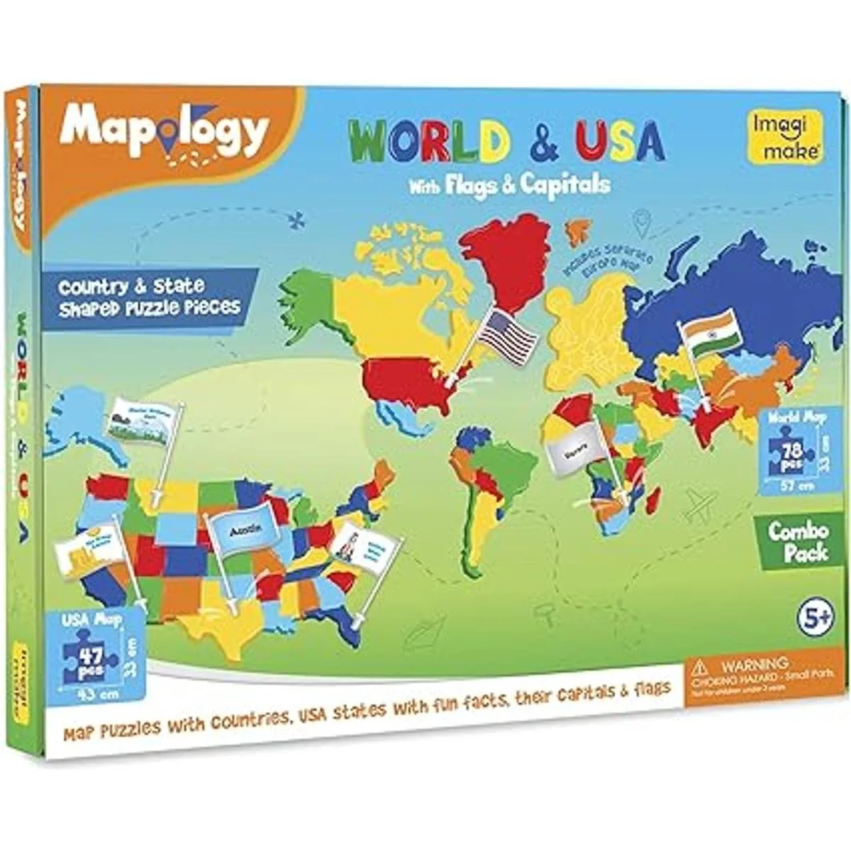 Imagimake Mapology, el mundo y Estados Unidos con capitales. Aprende sobre el mundo y los Estados Unidos con sus capitales y hechos divertidos, rompecabezas juguete educativo para niños mayores de 5 años