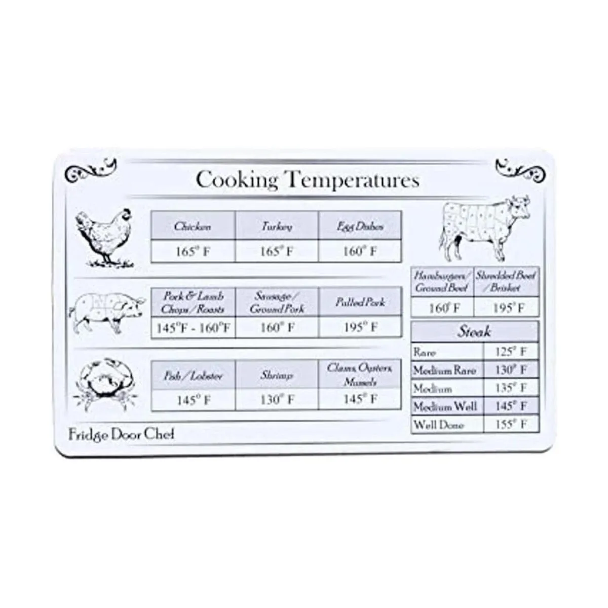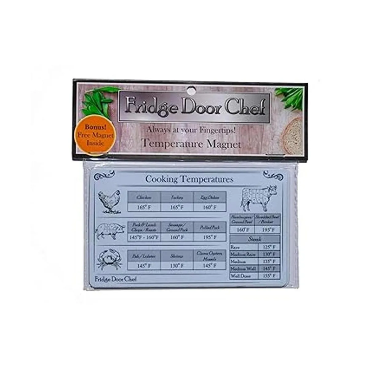 Fácil de leer, tamaño conveniente: tamaño de índice perfecto de 3.0 x 5.0 in. A diferencia de otros productos que ocupan un gran espacio en su refrigerador, la tabla de temperatura interna de la cocina de la puerta del refrigerador Chef es el tamaño perfecto, pero aún así es fácil de leer.