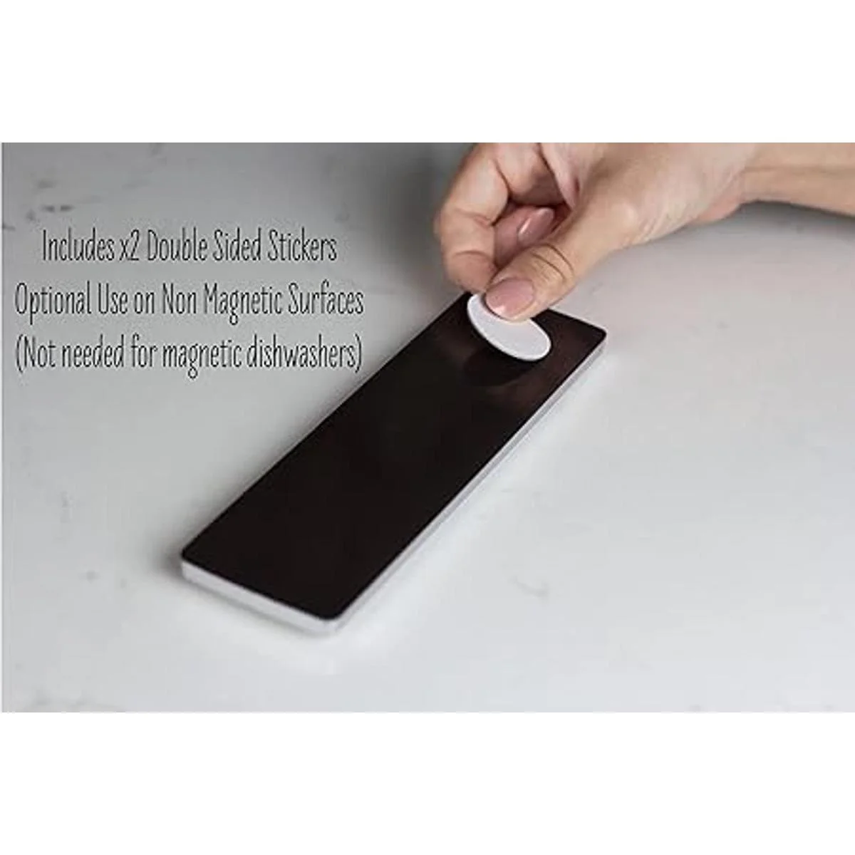 Uso universal: este imán deslizante limpio para indicador de lavavajillas incluye calcomanías adhesivas adicionales para cualquier superficie no magnética. Las pegatinas son para uso opcional, ya que solo son necesarias para superficies no magnéticas. El imán grande también funciona bien en la lavandería para tu lavadora o secadora. Acero inoxidable.