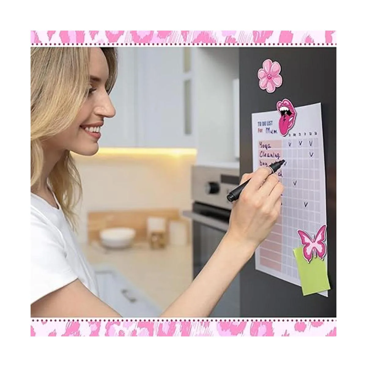 Imanes de refrigerador preppy rosa para mujer, imanes de refrigerador lindos para decoración de nevera, casilleros bohemios para niñas, imanes decorativos de leopardo, decoración magnética para nevera, armarios de cocina, oficina, pizarras blancas