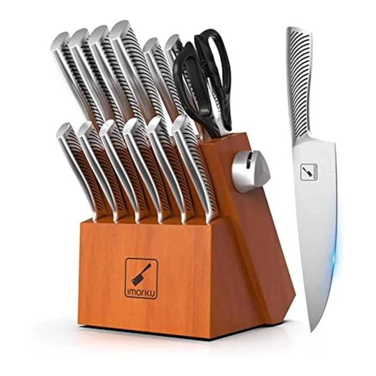 Confiable: imarku se centra en el desarrollo de cuchillos de alta calidad y se dedica a mejorar tu experiencia de cocina. Prometemos cubrir nuestros juegos de cuchillos de por vida. Si el juego de cuchillos está defectuoso, proporcionaremos cambio o devolución gratuita de por vida. El juego de cuchillos imarku para cocina con bloque es el regalo perfecto para bodas, cumpleaños, inauguración de la casa, Acción de Gracias, Navidad.