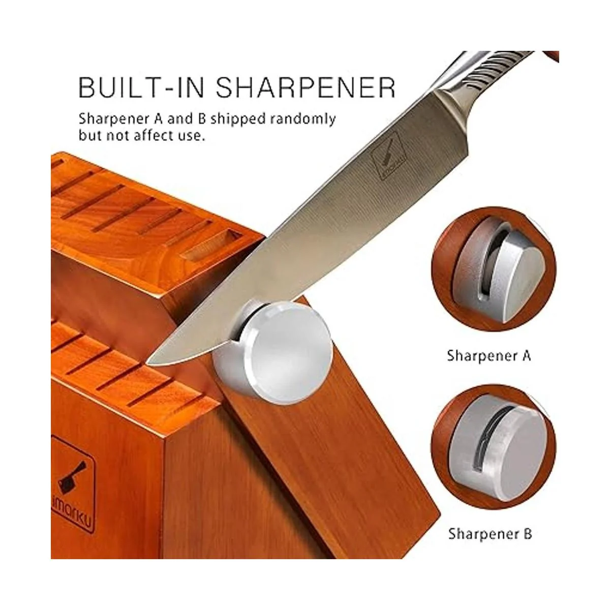 Imarku Juego de cuchillos de cocina con bloque, 14 piezas de acero inoxidable de alto carbono, aptos para lavavajillas, juego de cuchillos de chef con afilador integrado, mango ergonómico