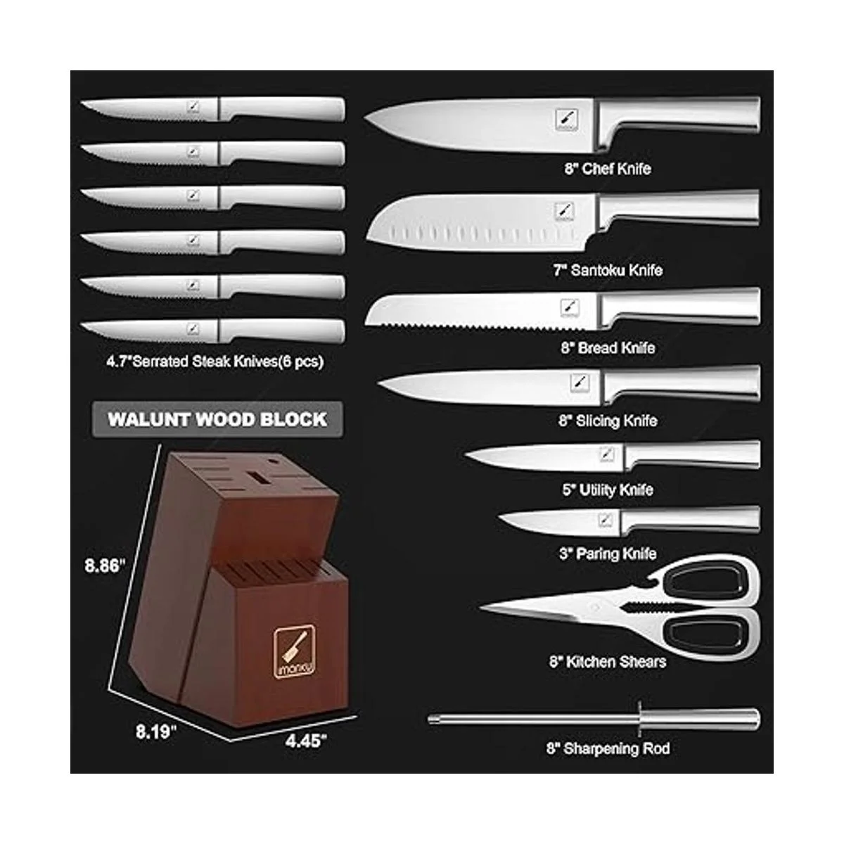 imarku Juego de cuchillos de cocina de 15 piezas japonesas de acero inoxidable con afilador, cuchillos de cocina aptos para lavavajillas, juego de cuchillos de chef ultra afilados para cocina, regalos de Navidad