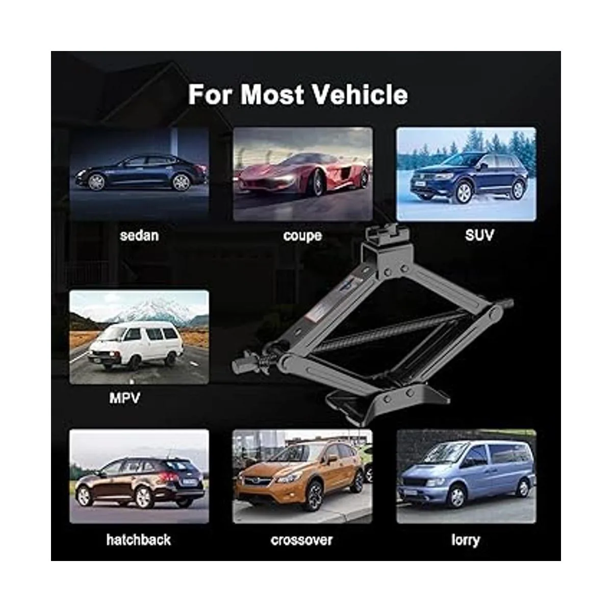 Jack universal para coche: gato de tijera portátil de 2 toneladas, adecuado para la mayoría de vehículos: sedán, cupé, SUV, MPV, hatchback, crossover, vagón y más. Un buen kit de cambio de neumáticos para tu vehículo.