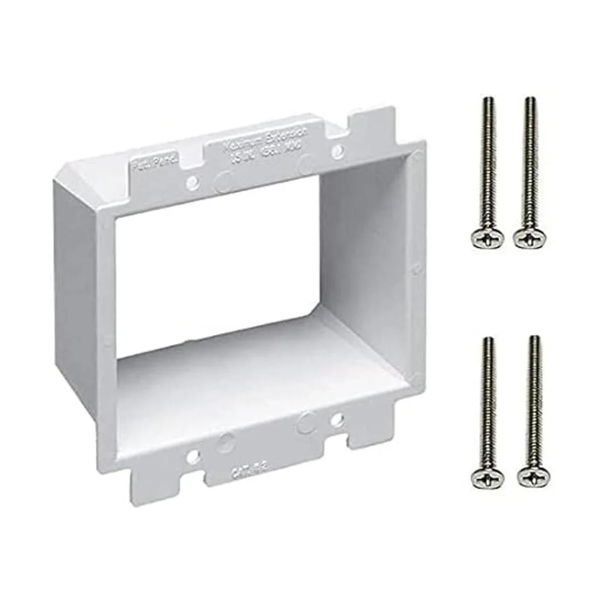 Nivela y soporta el dispositivo de cableado donde la caja está colocada hacia atrás desde la superficie de la pared se ajusta hasta una extensión de caja de 11/2 pulgadas