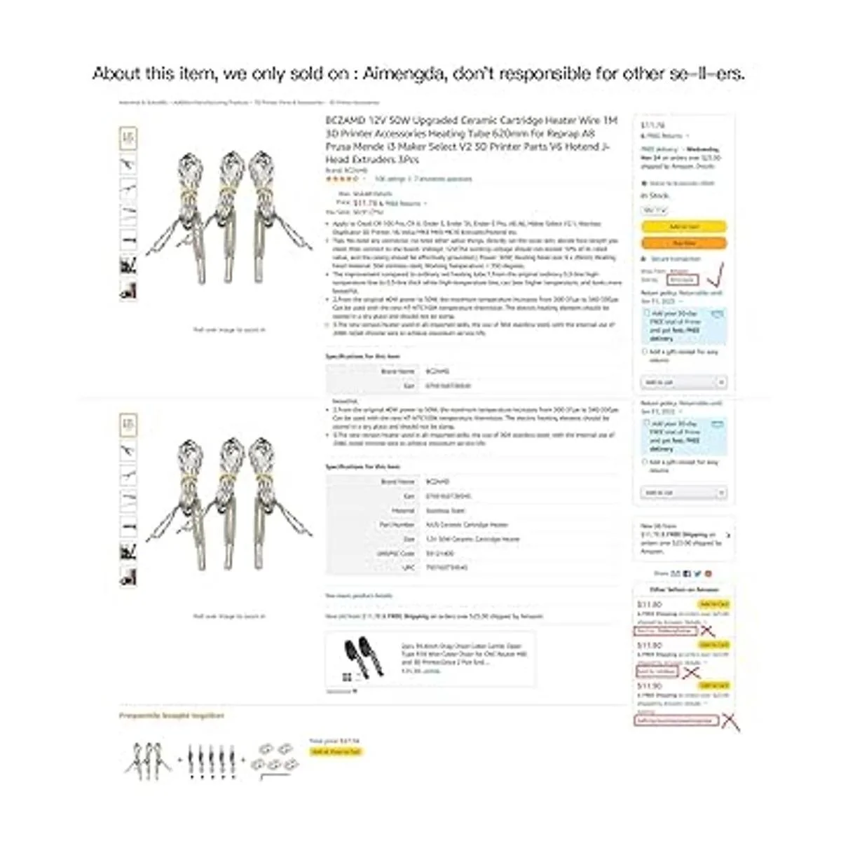 Imdinnogo BCZAMD Cartucho de cerámica mejorado de 12 V 50 W, accesorios para impresora 3D 1 M, tubo de calefacción de 24.409 in para Reprap A8 Prus Mende i3 Maker Select V2 3D piezas de impresora V6 Hotend JHead Extrusoras 3 piezas