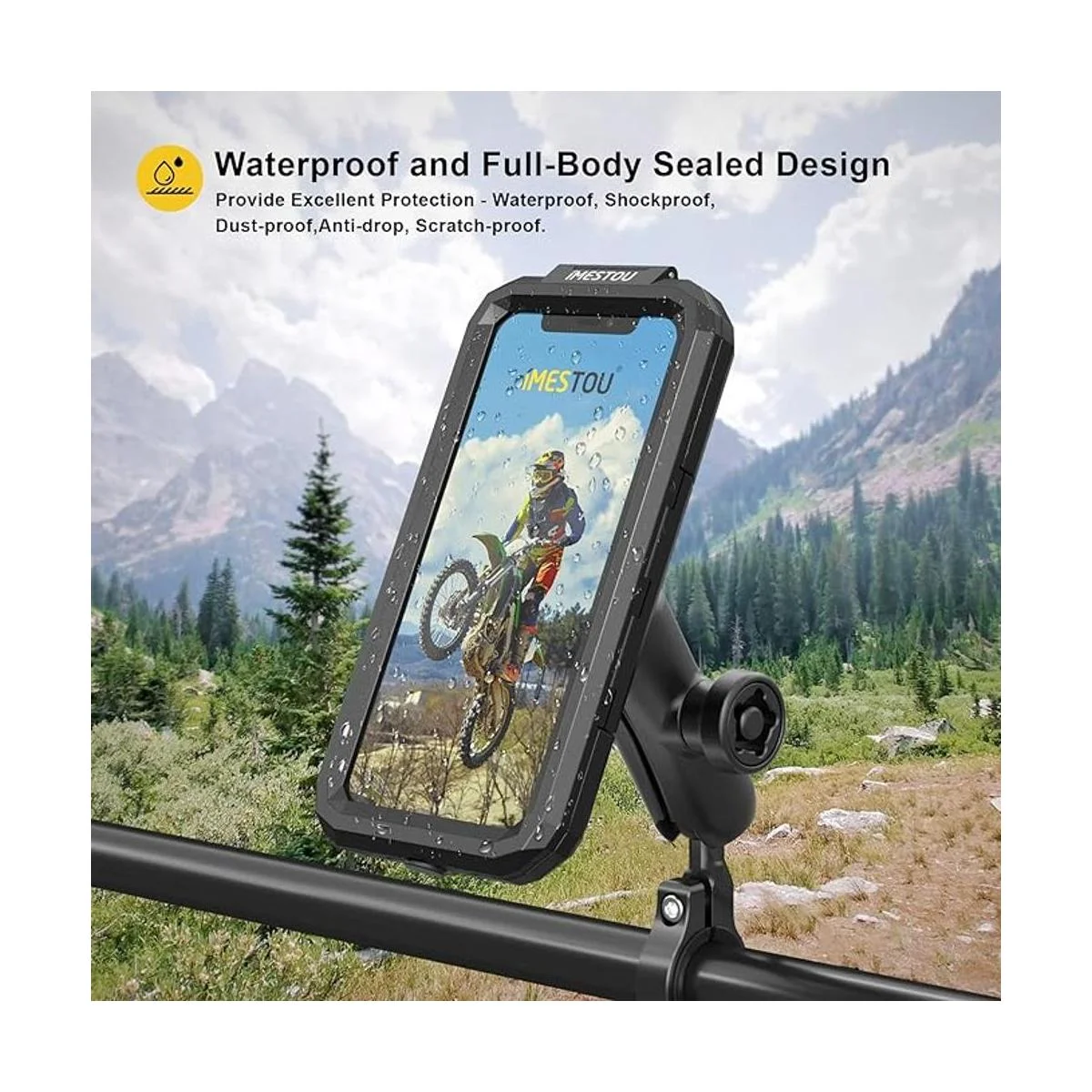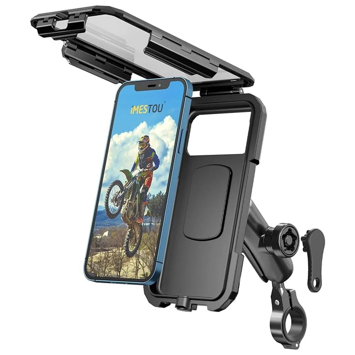 iMESTOU Soporte impermeable antirrobo para teléfono de motocicleta, soporte para teléfono de bicicleta de 1 pulgada con vástago de manillar de bola con brazos de doble enchufe, base de aluminio de rotación de 720 para teléfonos celulares de 5.5 a 6.8 pulgadas L