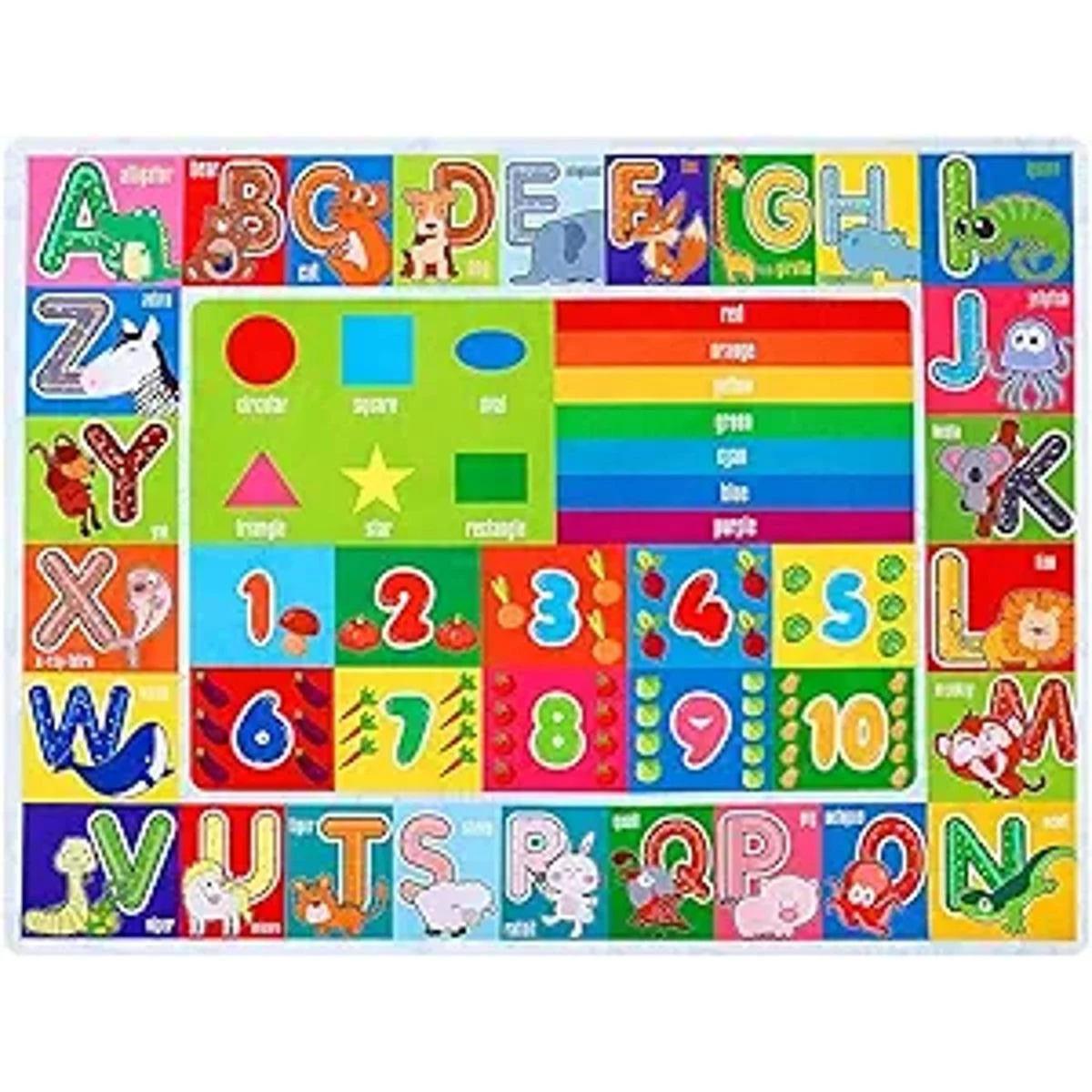 IMIKEYA Alfombra educativa para niños, colección Playtime ABC, números y formas, alfombra de aprendizaje para niños, alfombra de juego para sala de juegos, dormitorio, 55.1 x 43.3 pulgadas
