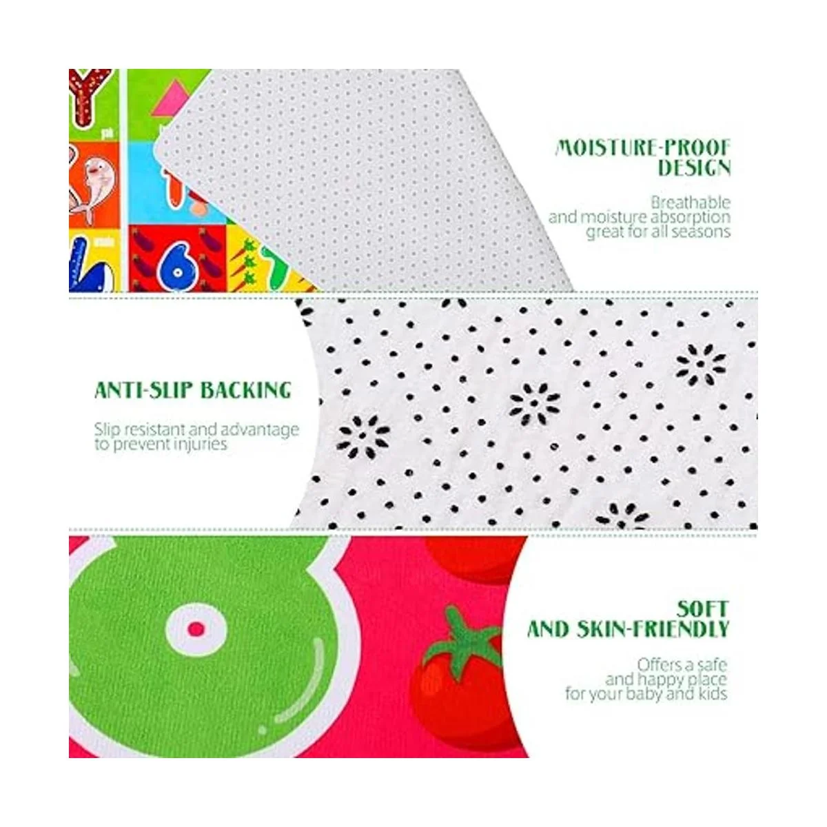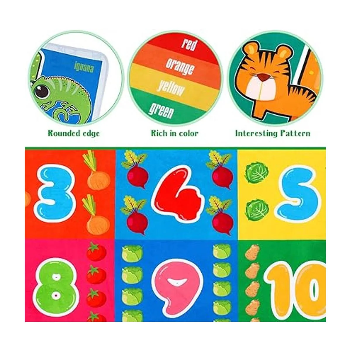 Alfombra de aprendizaje y educativa: nuestra alfombra de juego para niños viene con el alfabeto ABC que está representado por objetos específicos de animales de dibujos animados, números que el número correspondiente de verduras, formas en diferentes colores, arco iris que el nombre de color correspondiente, colores brillantes y patrón vívido. Deja que tu hijo aprenda a través del tiempo de juego, inspira la curiosidad en el corazón de tu bebé y promueve la educación temprana.
