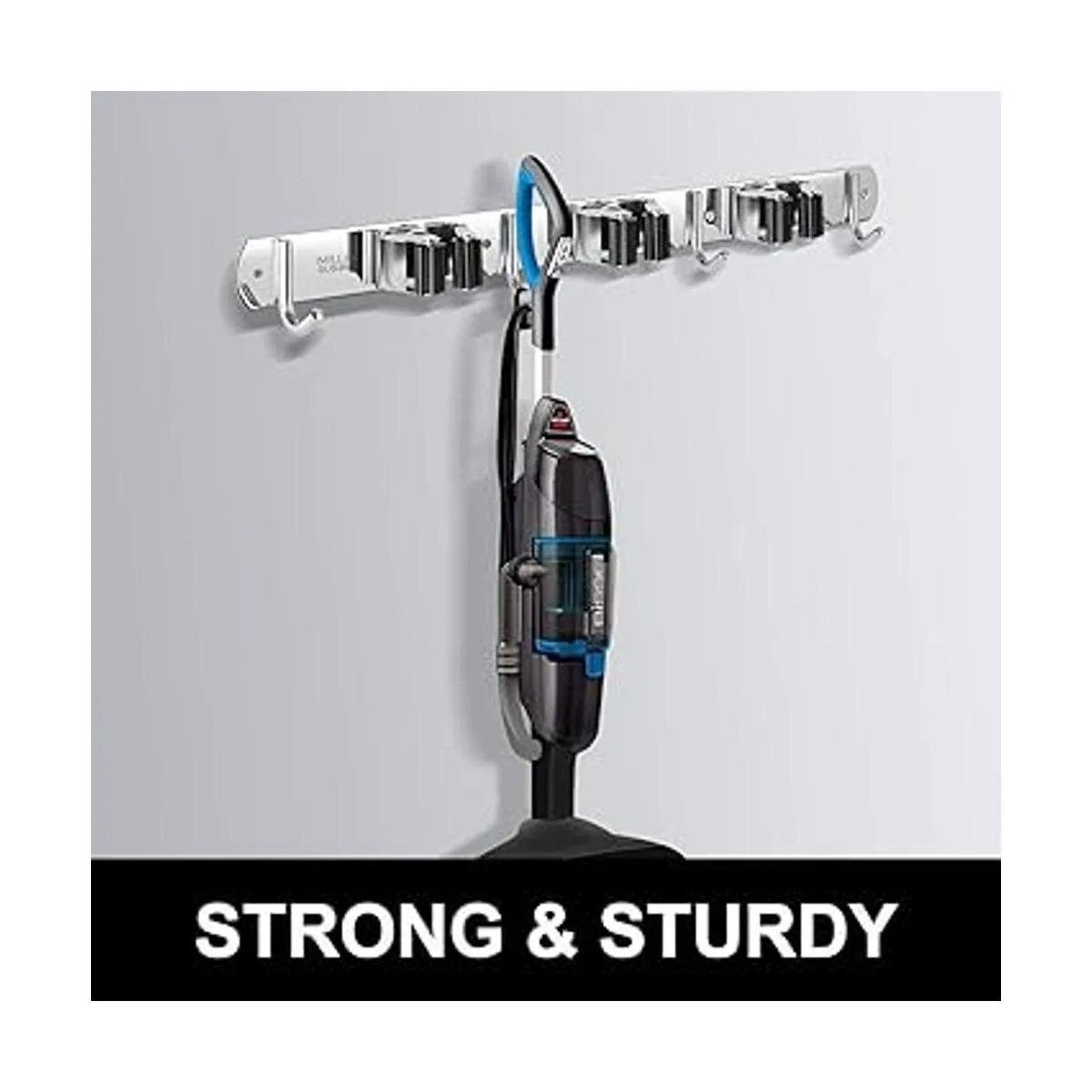 Fuerte y resistente: el soporte de pared para escobas está hecho de acero inoxidable 304, resistente a la corrosión, a prueba de humedad y al agua. En comparación con el estante de escobas de plástico, es más fuerte y duradero. Y este organizador de escobas puede soportar hasta 200 libras.