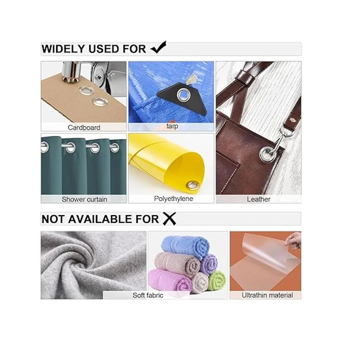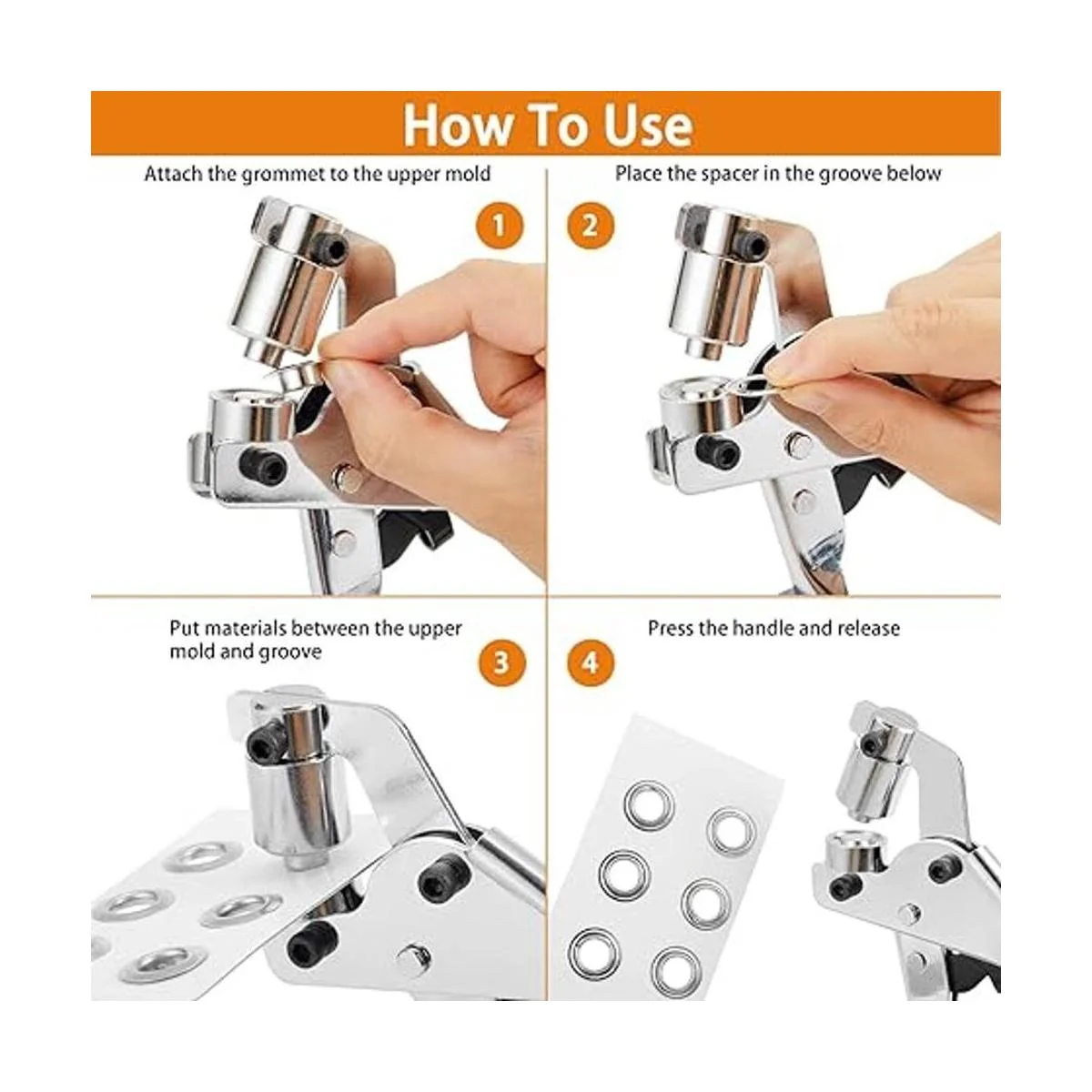 Calidad superior: aplicado con metal duradero de alta pureza para una vida útil más larga. Este perforador manual de ojales coincide con ojales de 0.394 in de diámetro interior con 500 ojales incluidos.