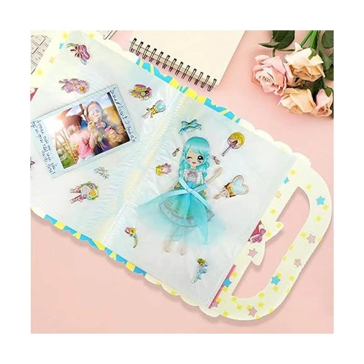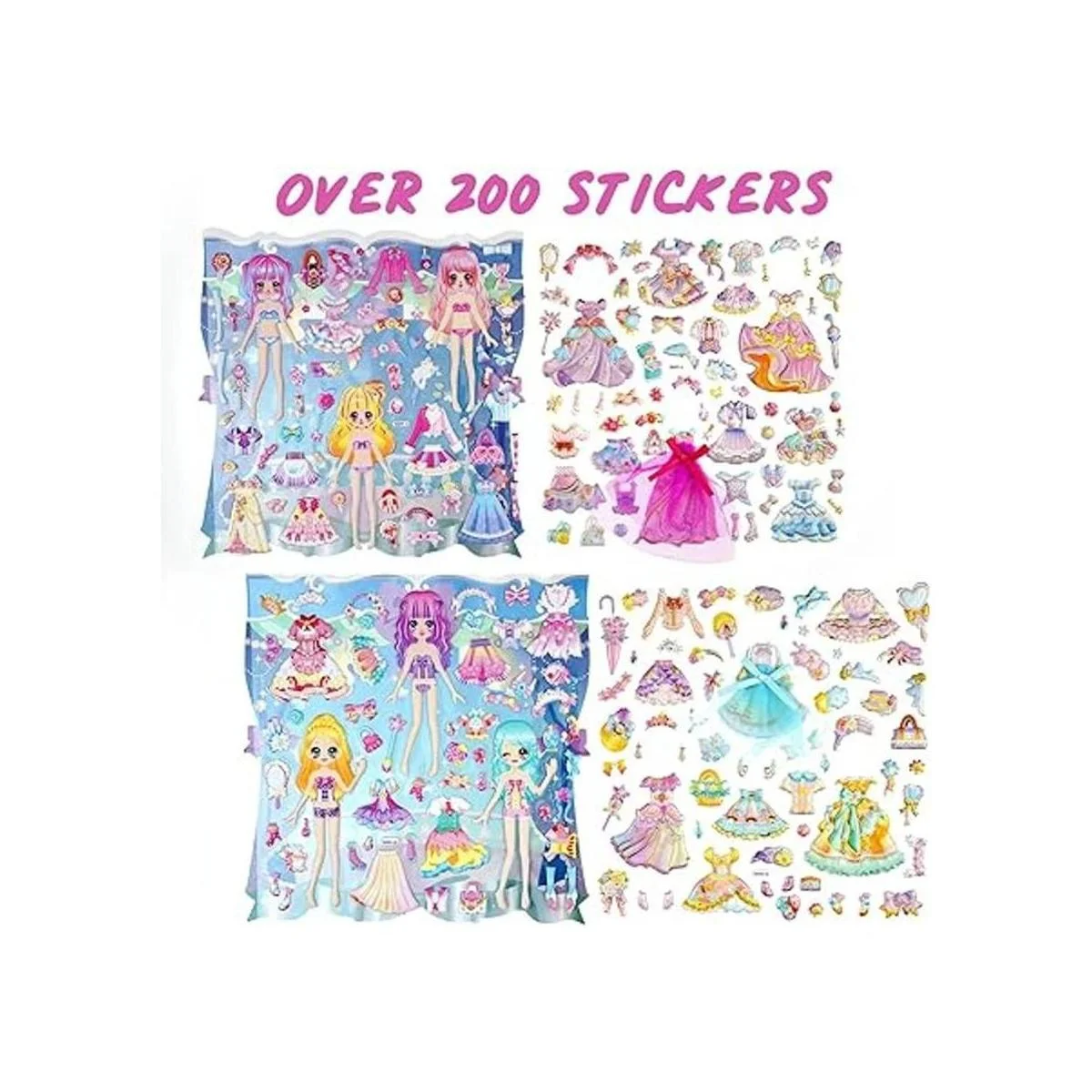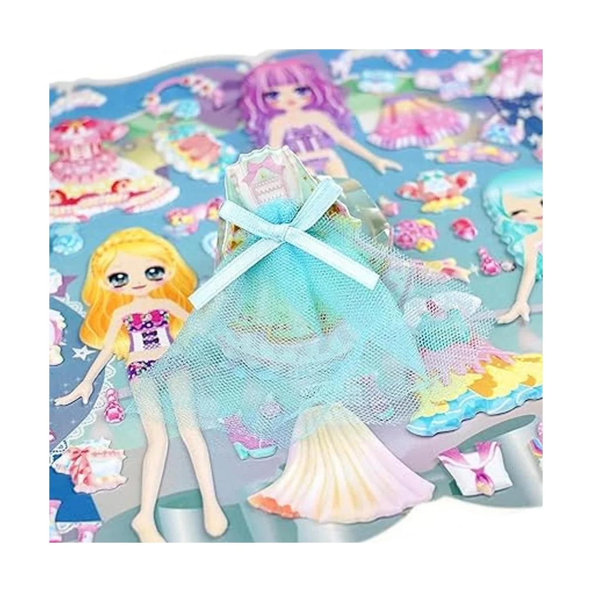 IMNEXT2U Puffy Adhesivo decorativo de doble capa, diseño de princesa con álbum de colección para pegatinas, 2 hojas, color azul y rosa