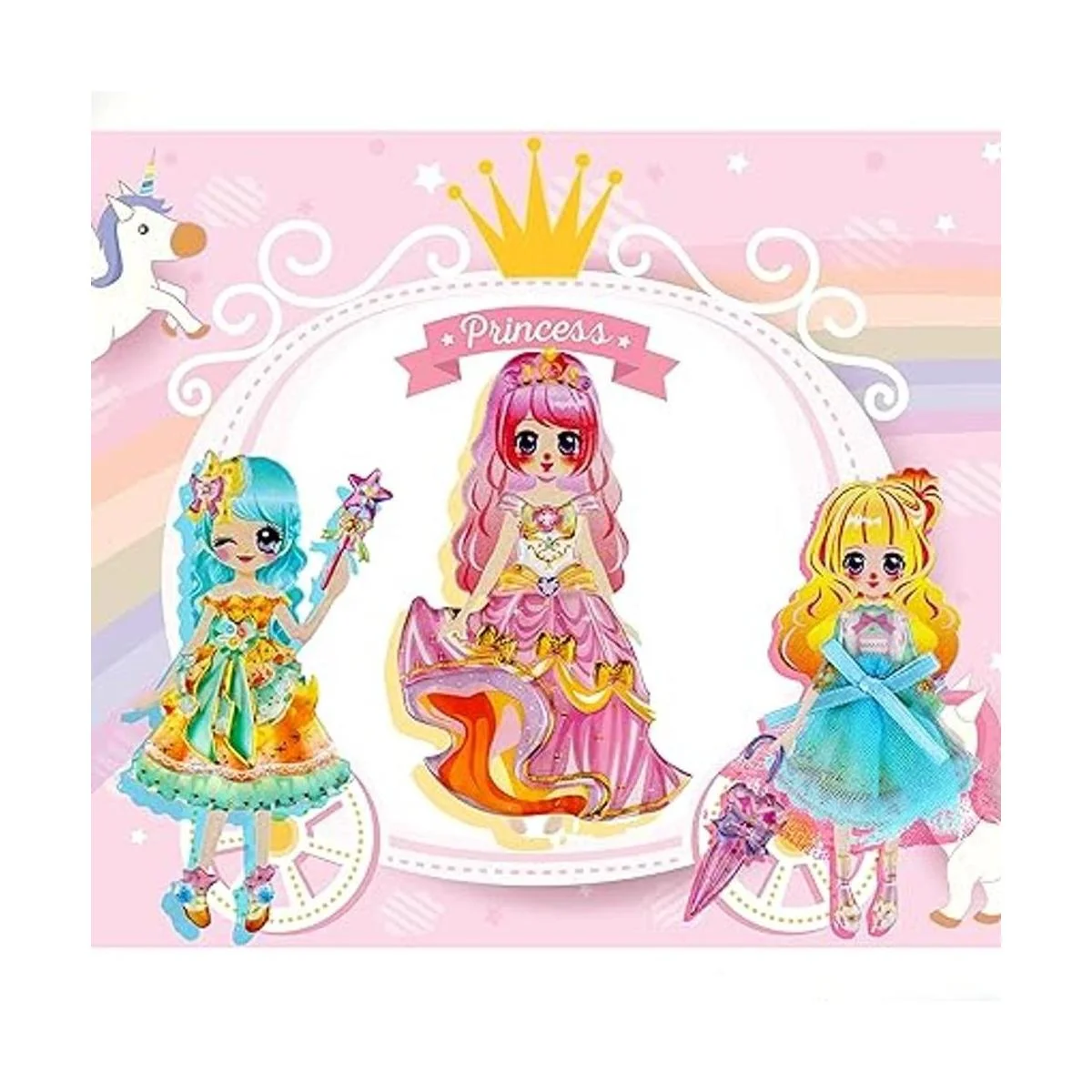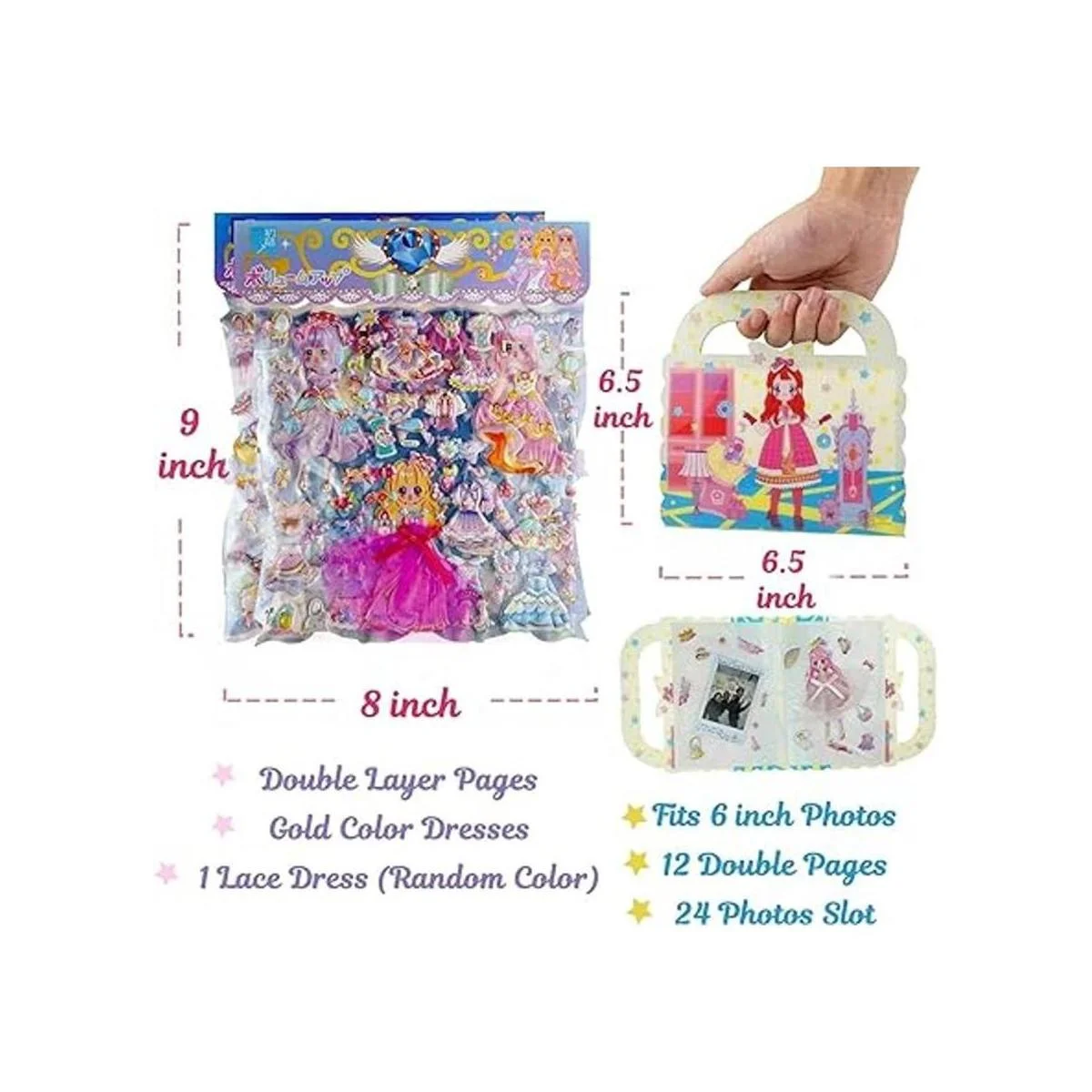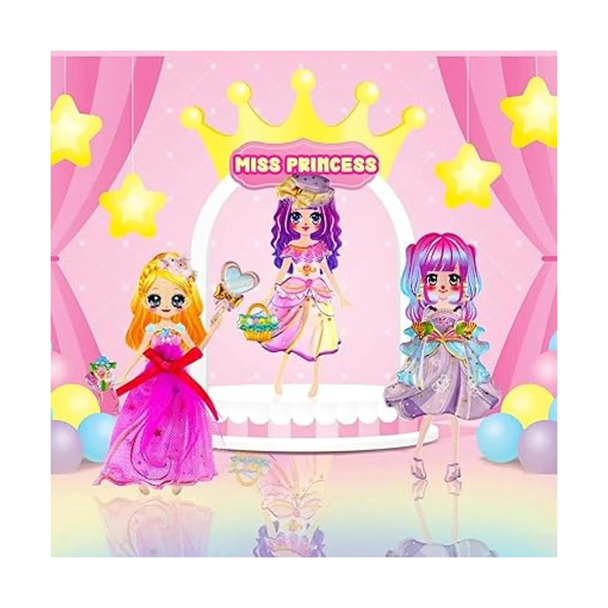 IMNEXT2U Puffy Adhesivo decorativo de doble capa, diseño de princesa con álbum de colección para pegatinas, 2 hojas, color azul y rosa