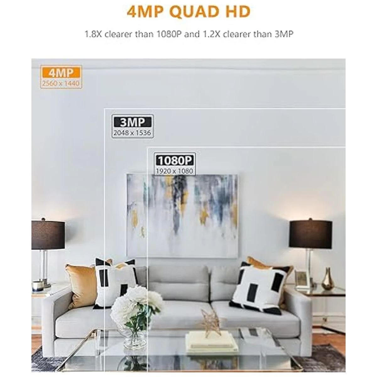 Resolución 2K y visión nocturna: esta cámara de seguridad interior de 4MP ofrece una mayor calidad de video 2560 x 1440, captura más detalles de video, mejor para identificar intrusos u otras amenazas de seguridad. La visión nocturna superior permite claridad con detalles ricos incluso en la oscuridad completa, visión nocturna de hasta 33 pies
