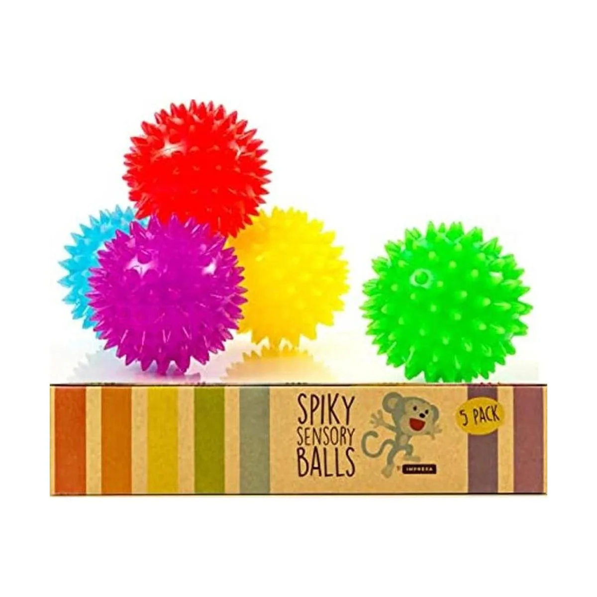 Impresa Products Paquete de 5 bolas sensoriales puntiagudas, juguetes sensoriales para apretar, juguetes sensoriales sin bisfenol A, látex para la escuela y educación especial