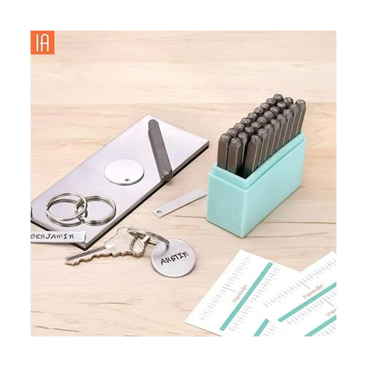 El martillo de acero blando está diseñado para dejar impresiones profundas e uniformes, mientras que el bloque de estampado de tamaño práctico proporciona una superficie de estampado sólida.