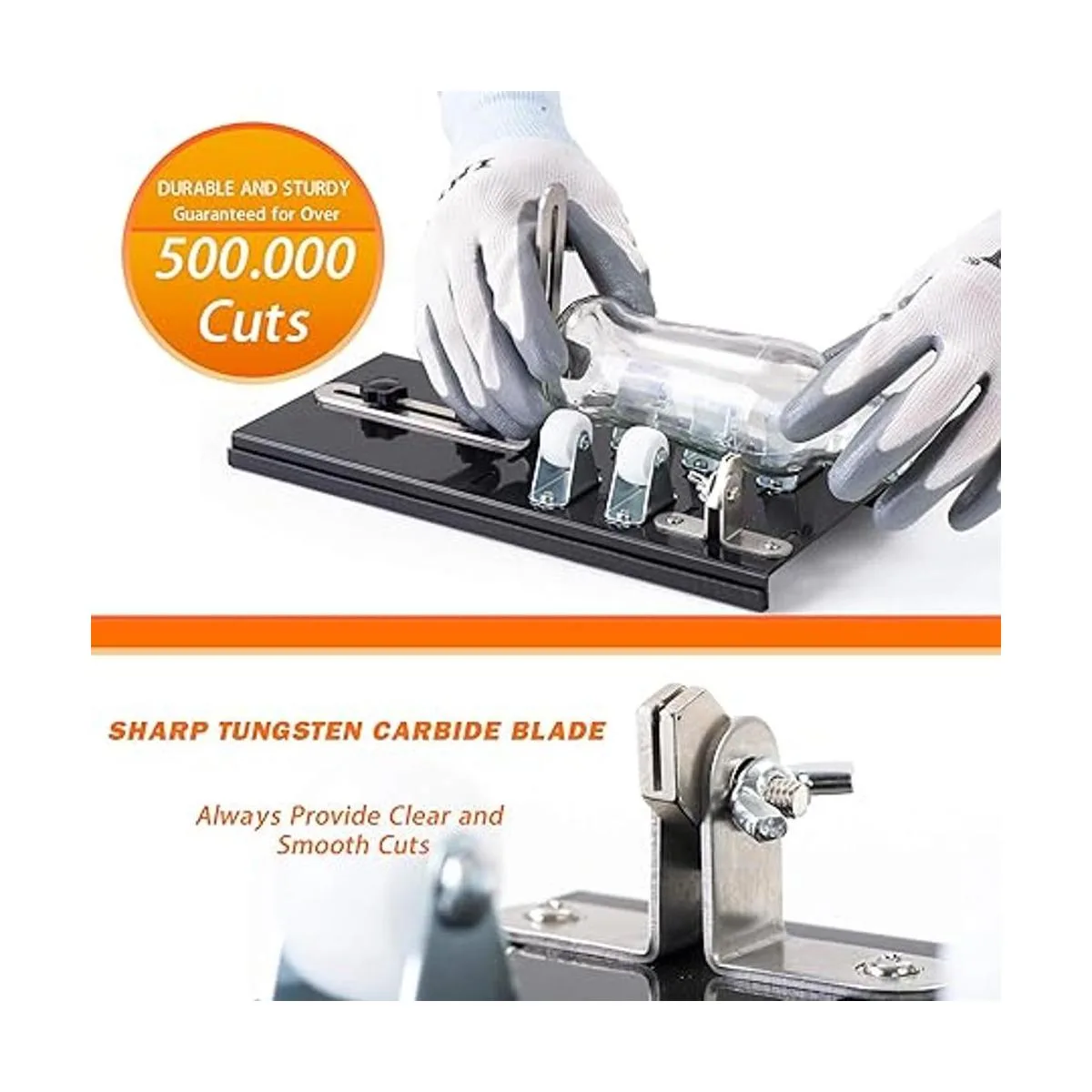 Ligero y construido para durar: hoja ultra fuerte y base de metal ligero sólido, garantizado para durar y dar cortes precisos cada vez. Las almohadillas de goma base añaden un agarre estable y eliminan errores de corte debido a la agitación. La base antideslizante de goma puede mantener el cortador de vidrio para botellas estable en la mesa. Los cierres y piezas son muy seguros, por lo que puedes hacer un corte hermoso y preciso en tu primer intento.