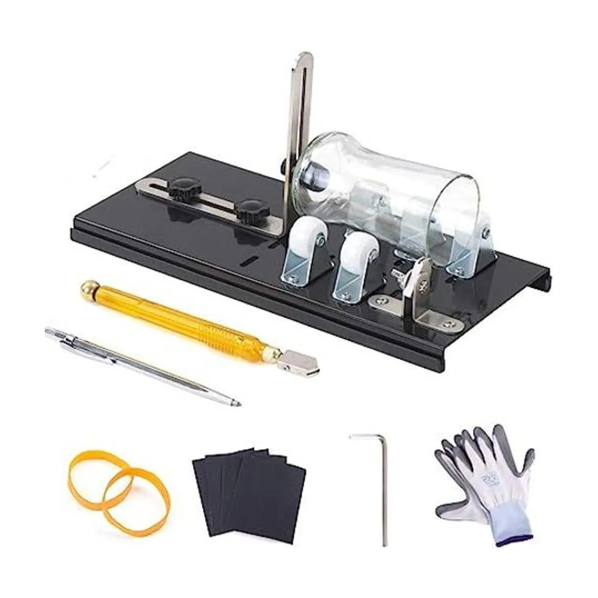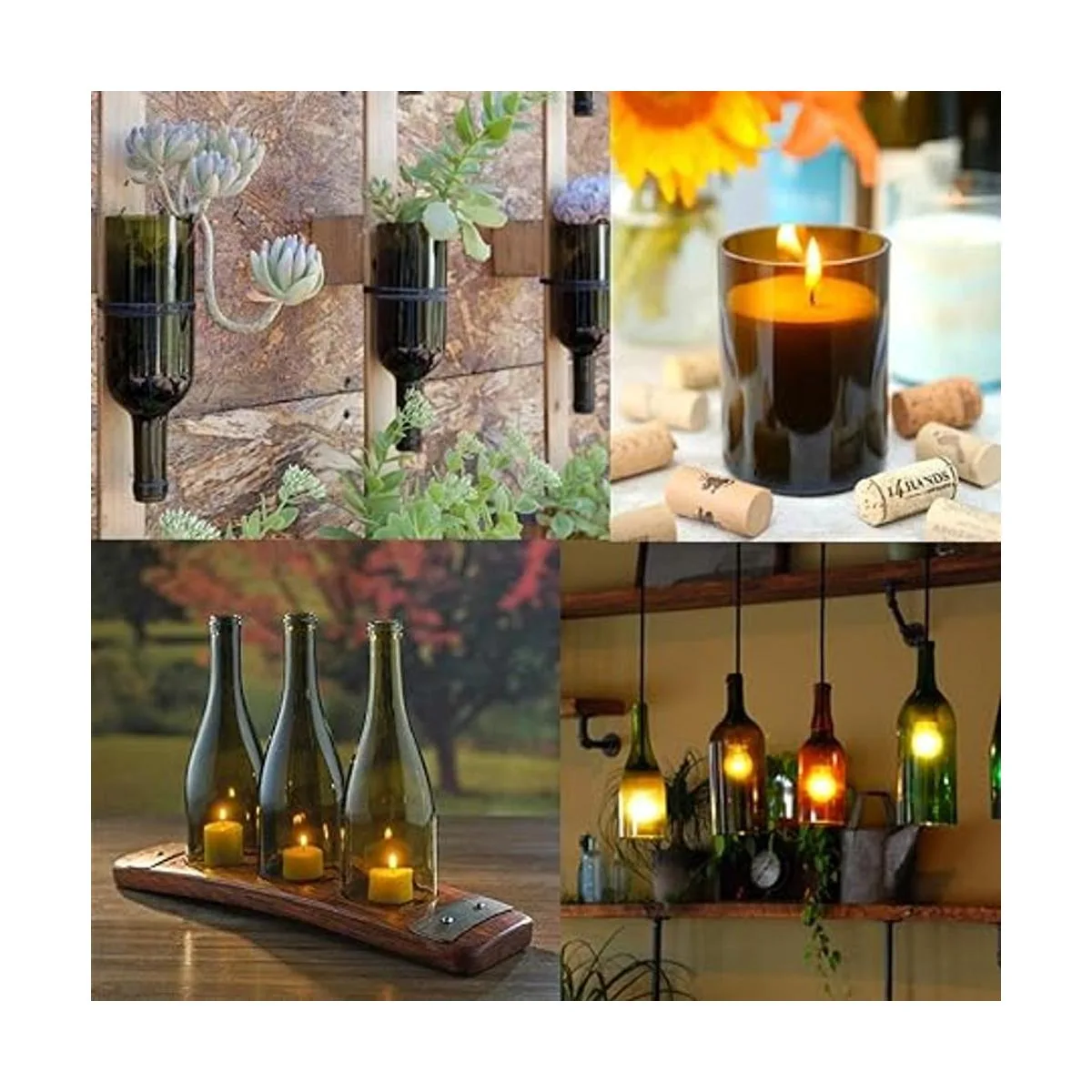 Kit completo de herramientas de corte de vidrio: la botella de vidrio se puede fijar al cortador de botellas fácilmente. Además del cortador, ofrecemos accesorios como: 1 par de guantes, 2 anillos de goma de fijación, 4 papeles mate, 1 escritura de vidrio, 1 cortador de vidrio y 1 destornillador. No hay necesidad de preparar las herramientas. Puedes cortar las botellas de forma cómoda y segura.