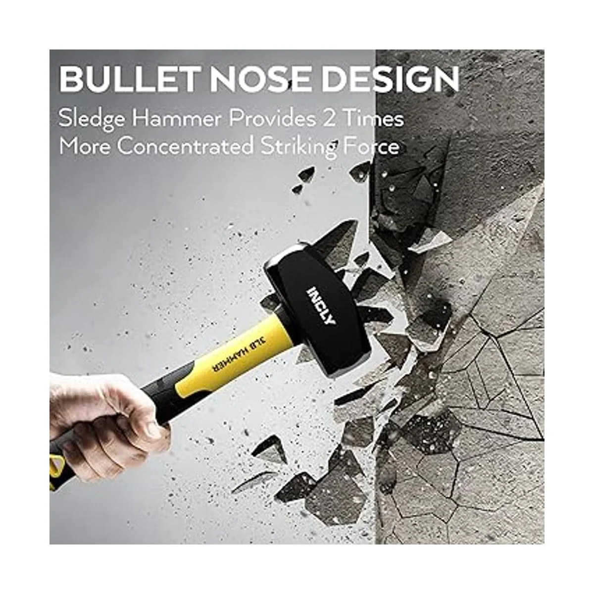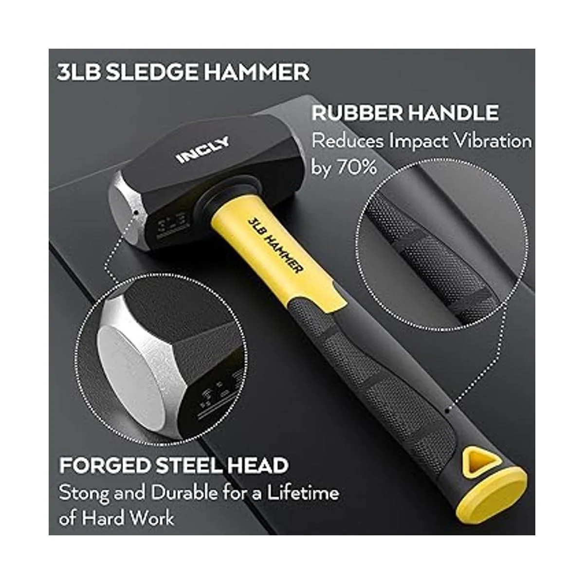 Martillo fuerte de 3 libras: las herramientas de golpe más duraderas y duraderas. El martillo de trineo consta de una cabeza de martillo de 3 libras y un mango de agarre acanalado, el mango contiene barra de fibra de vidrio que ayuda a reducir los golpes y la vibración, la fatiga.