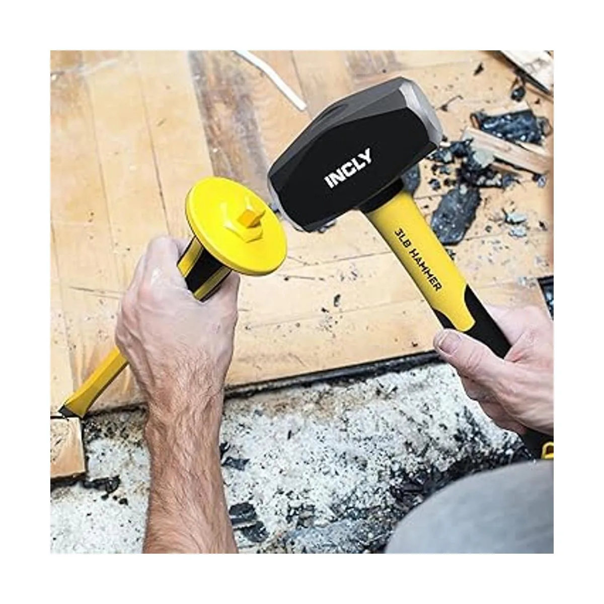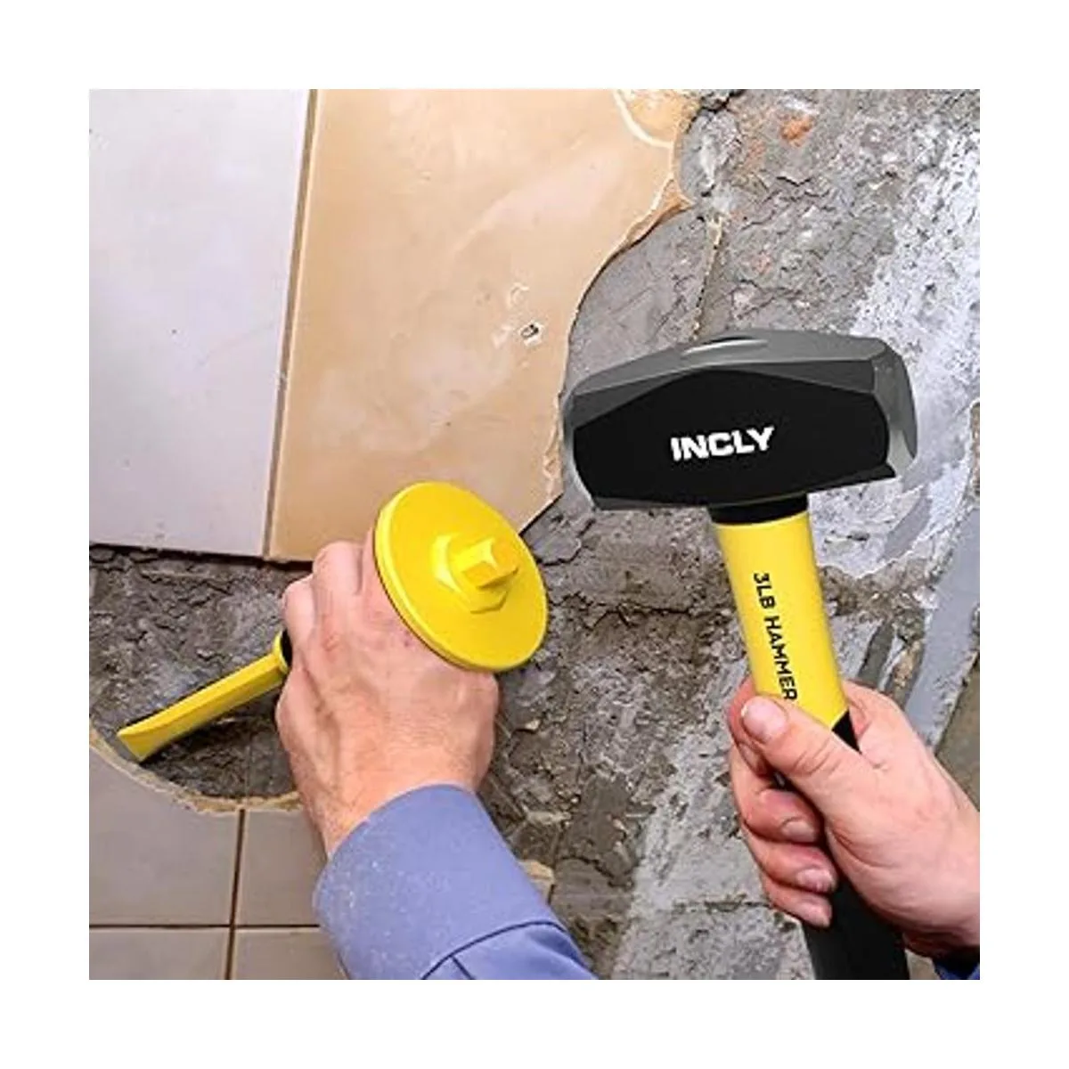 Paquete económico: viene con un martillo de púa de roca de alta resistencia de 3 libras, 1 cincel albañil y gafas y guantes de seguridad ajustables, equipo necesario que necesitarás.