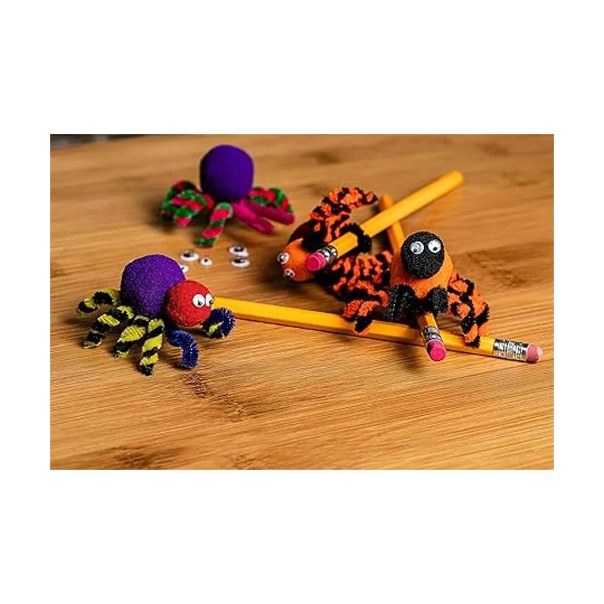 Material de alta calidad: cada pompón está hecho con material seguro y no tóxico de la más alta calidad que durará más tiempo sin decolorarse el color con el tiempo. Los ojos saltones son autoadhesivos, fáciles de despegar y pegar.