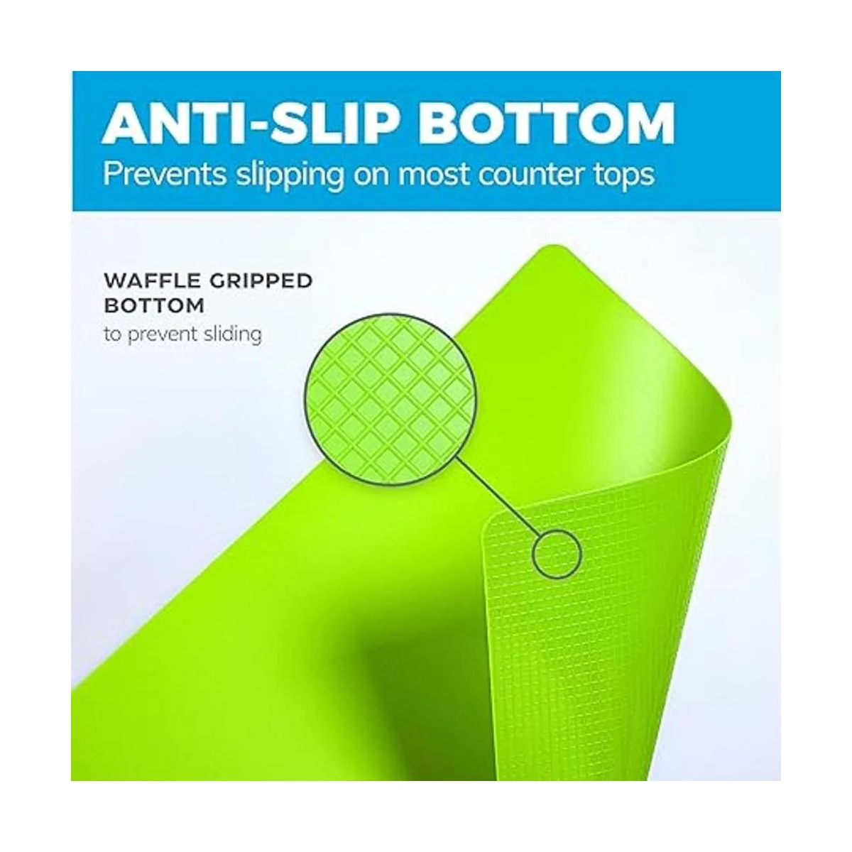 Textura waffle revestido parte inferior evita el deslizamiento en la mayoría de las encimeras cada alfombrilla de corte tiene un diseño posterior con textura, por lo que la alfombrilla no se deslice en su gerso. sólo moja una toalla de papel y poner debajo de tamaño para el hogar Chef. fácil de guardar y mantener.