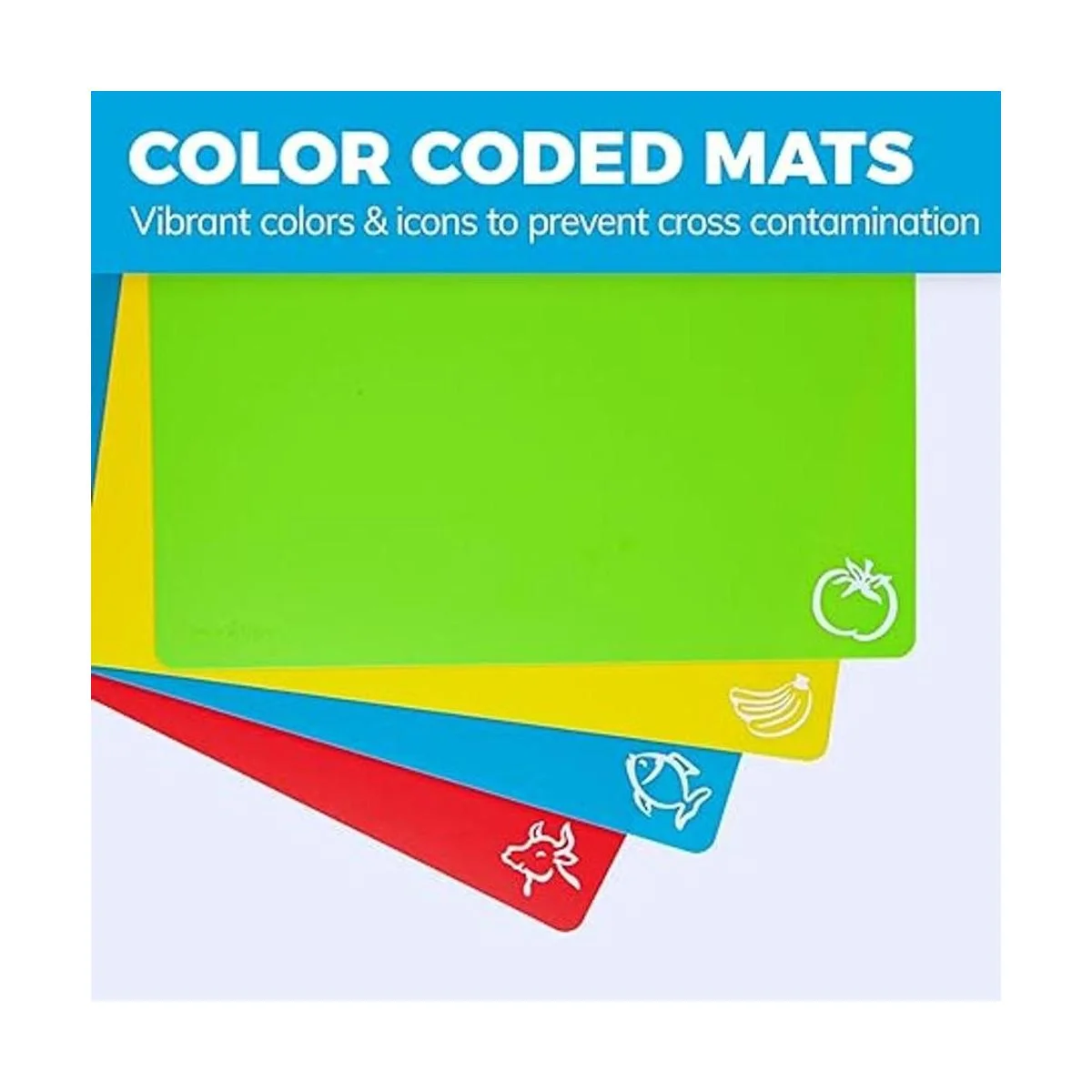Juego de 4 alfombrillas de corte color coded plástico grueso de alta calidad Apto para lavaplatos ideal para Kosher y vegetariana hogares. Mats medida 12 inches por 15 inches. fácil de curl, Roll, limpiar y guardar para cualquier uso. gran garantía. añadir al carrito ahora.