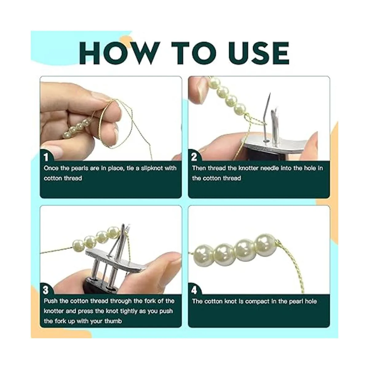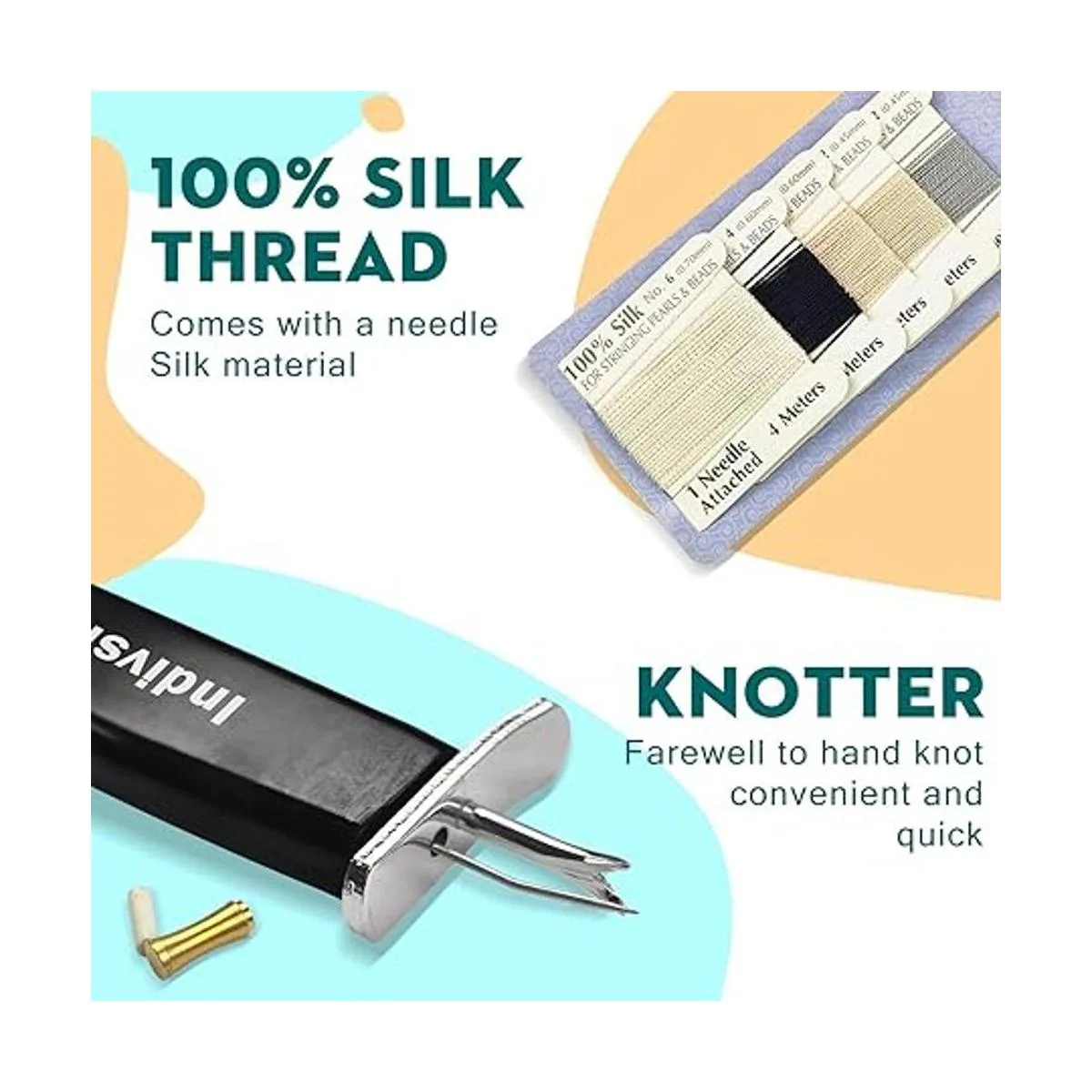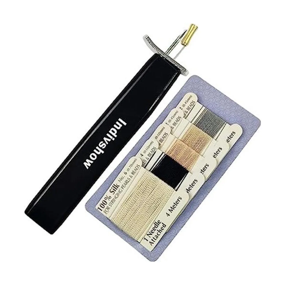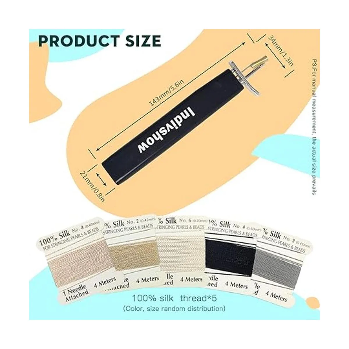 INDIVSHOW Kit de herramientas para anudar cuentas con 5 tarjetas, hilo de seda 100 natural para hacer joyas de perlas