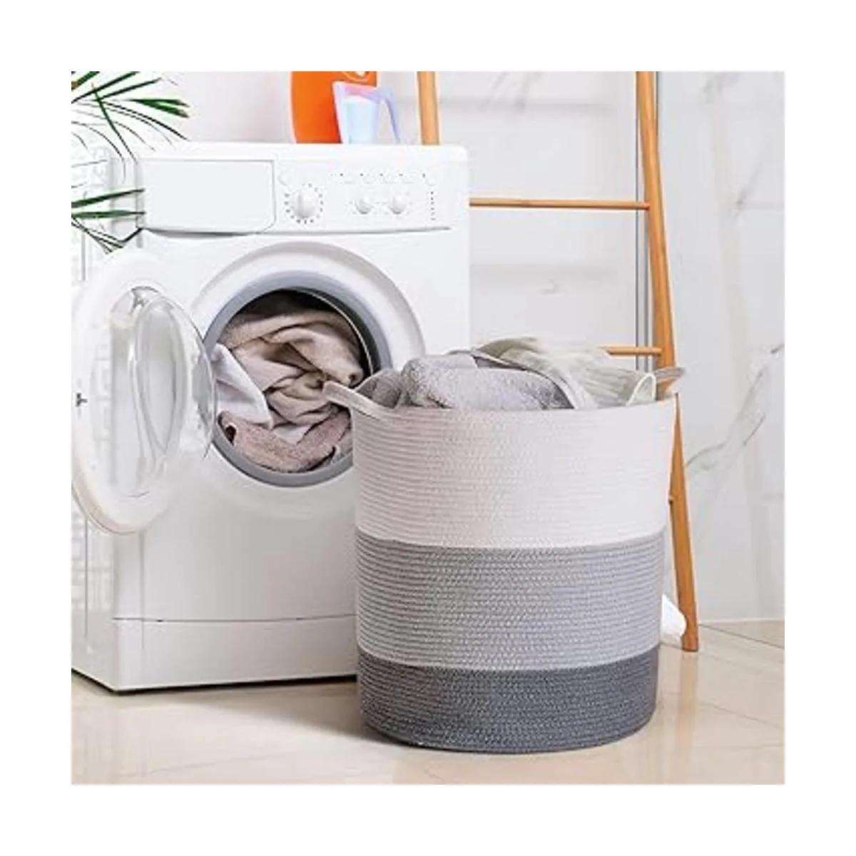 Diseño funcional. El diseño de la cesta de juguete con asas suaves y resistentes permite un transporte cómodo de cargas pesadas alrededor de la casa, lo suficientemente envolvente como para mantenerse de pie por sí solo, cesta de lavandería para bebé que no araña la piel de los niños y el suelo de madera
