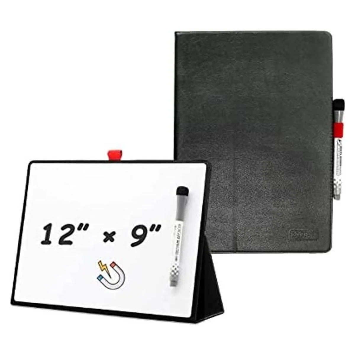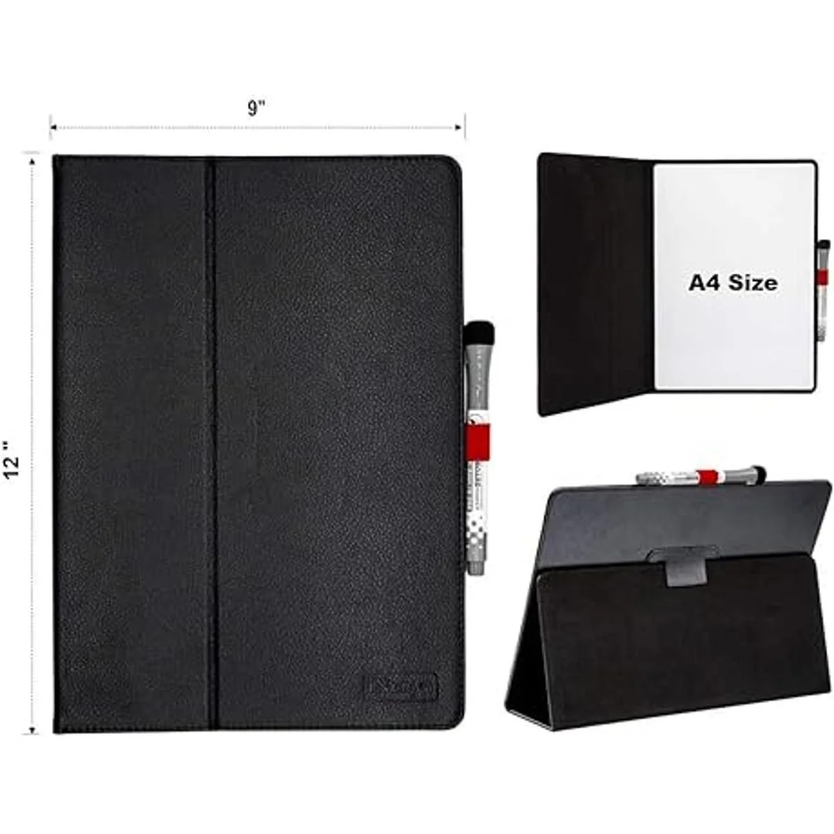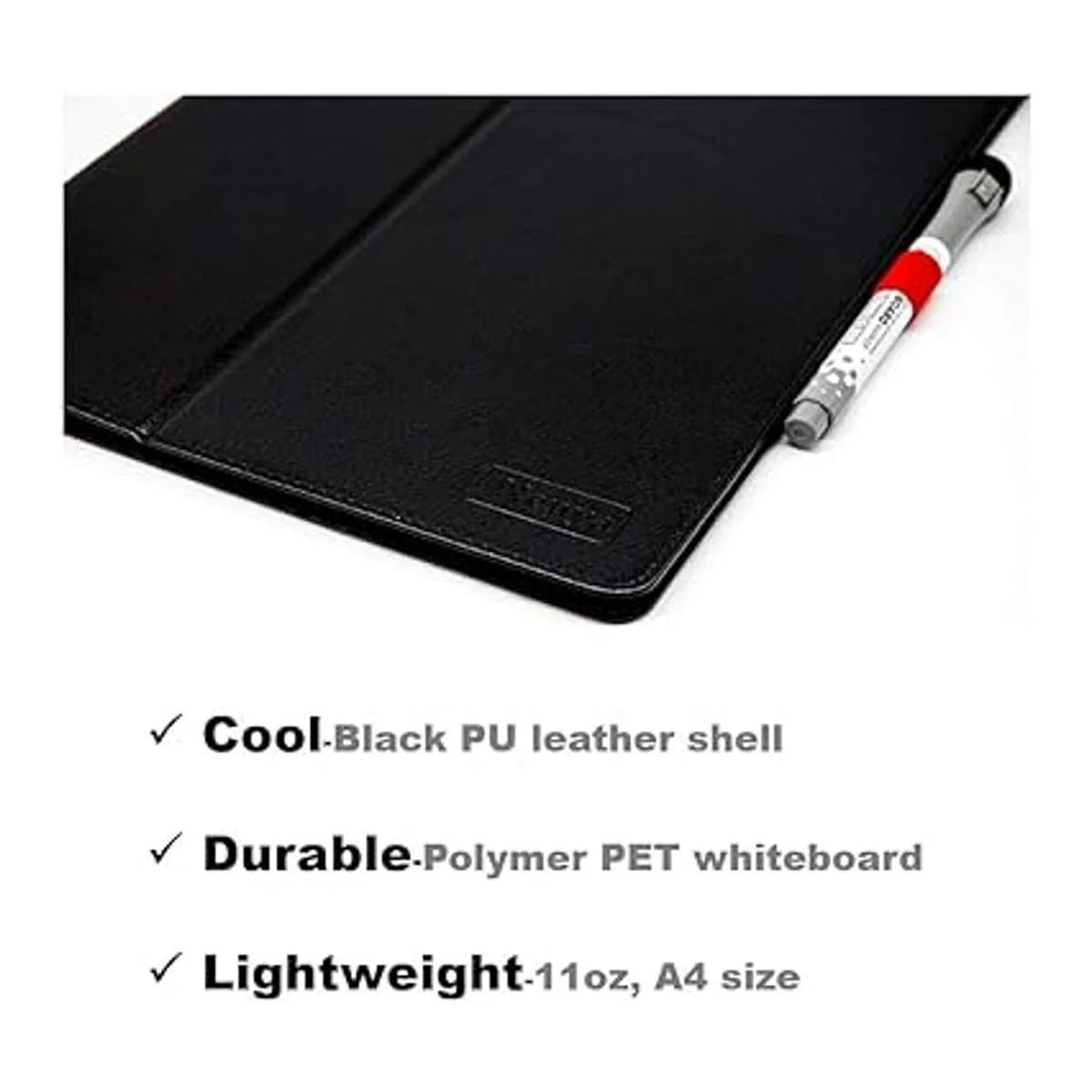 Diseño único de cuaderno portátil: tamaño A4 compacto, ligero y portátil, solo 12 x 9 x 0.3 pulgadas, pizarra blanca de borrado en seco de 11 onzas, es un cuaderno de piel sintética, también como una almohadilla, elegante, incluso se puede llevar en la bolsa contigo.