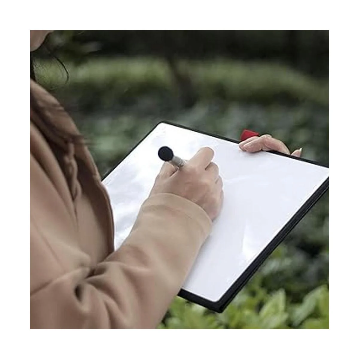 Cuaderno reutilizable inteligente: la pizarra blanca portátil de borrado en seco es compatible con la aplicación Microsoft Office Lens u otra aplicación OCR, se convierte en un portátil reutilizable inteligente. También tiene una función de soporte, que puede mantenerse en posición vertical en un escritorio, o es ideal para uso manual.