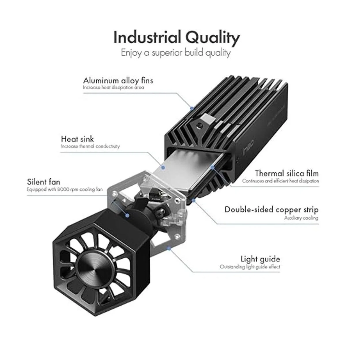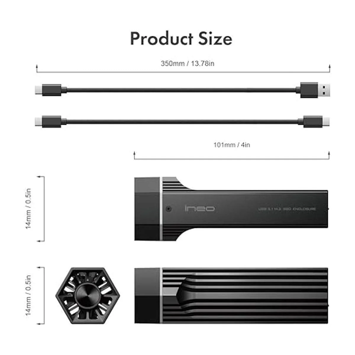 ineo M.2 NVMe PCIe SSD Enclosure Ventilador de refrigeración integrado y interruptor de protección contra escritura C2605NVMe