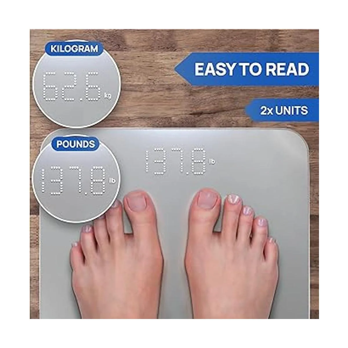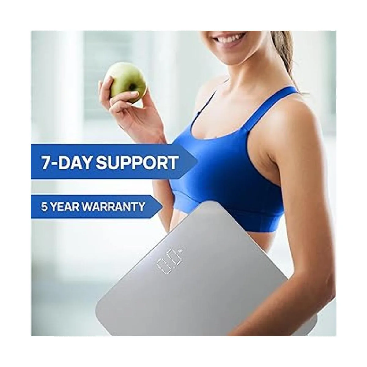 Cumple tus objetivos de fitness más rápido: monitorea con precisión el peso corporal pisando la gran plataforma de vidrio templado premium de 11.8 x 11.8 pulgadas para rastrear tu progreso y alcanzar tus objetivos de fitness más rápido.