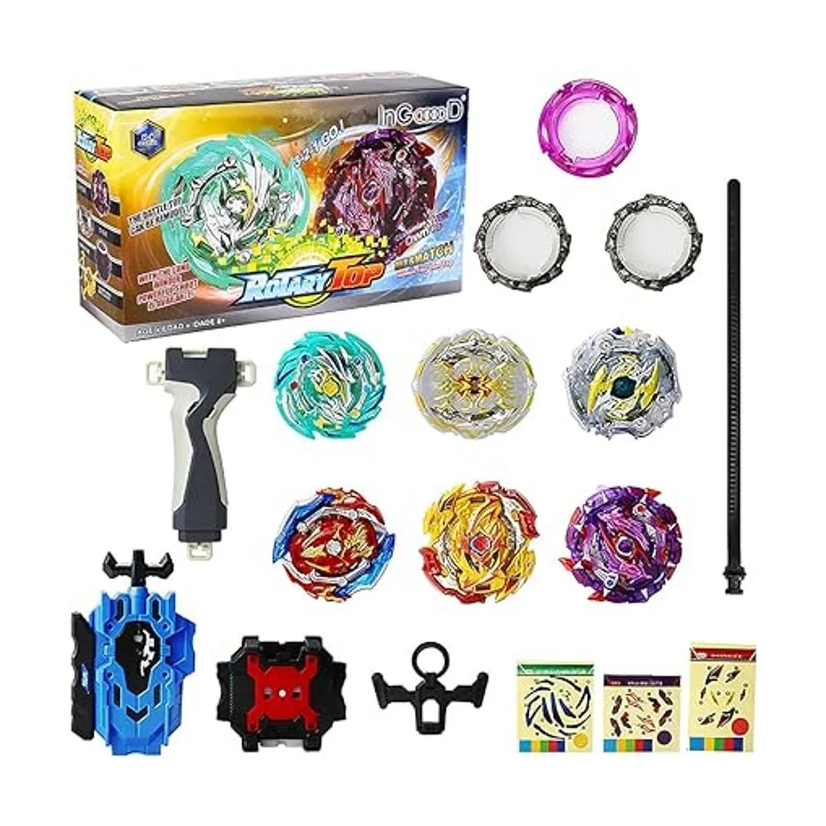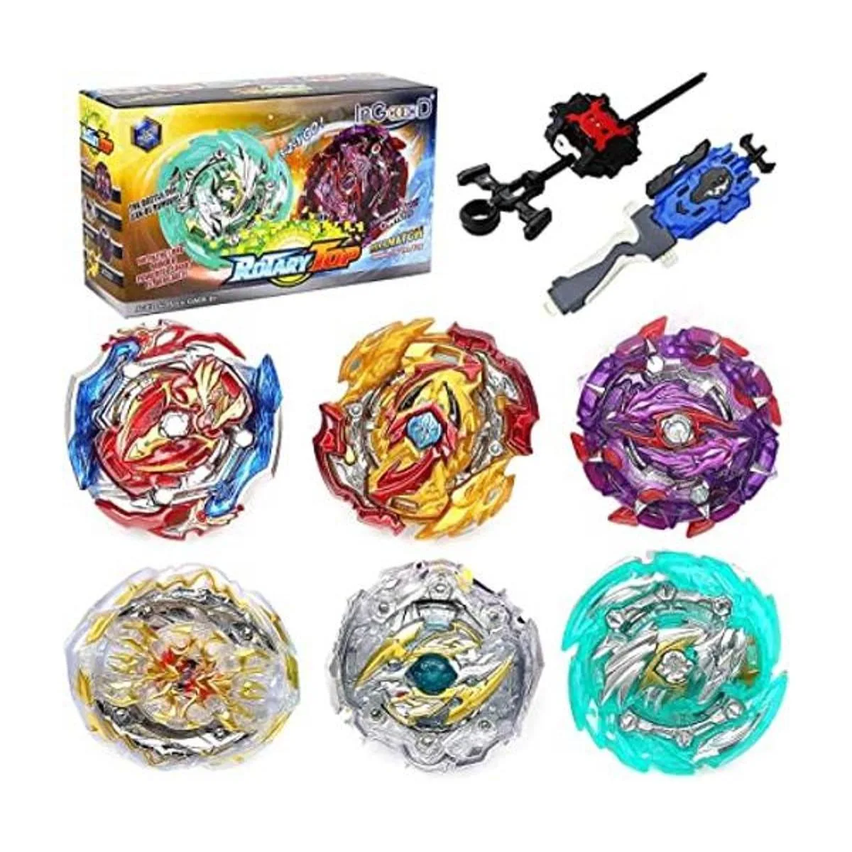 Ingooood Juguetes giratorios para niños, paquete Fusión Metal, 6 piezas, Battle Top Burst Juego de alto rendimiento con 2 lanzadores H9A
